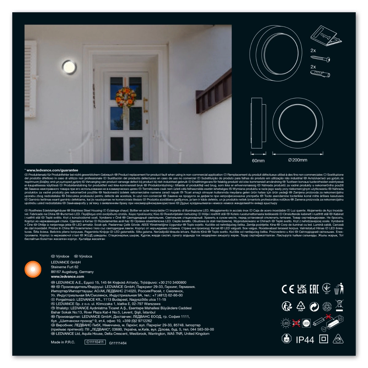 Wykonana ze stali nierdzewnej i wyposażona w przesłonę z poliwęglanu (PC), lampa wyróżnia się nie tylko trwałością, ale i nowoczesnym designem w kolorze srebrnym, który doskonale komponuje się ze współczesnymi aranżacjami zewnętrznymi. Długa żywotność, sięgająca 25 000 godzin, zapewnia długotrwałe użytkowanie bez obaw o wymianę. Dzięki prostemu sposobowi montażu natynkowego i trójbiegunowemu terminalowi, instalacja lampy jest szybka i bezproblemowa. Wybierz kinkiet elewacyjny LED Endura Ledvance i zamień swój ogród w stylowe i bezpieczne miejsce do spotkań i relaksu na świeżym powietrzu.