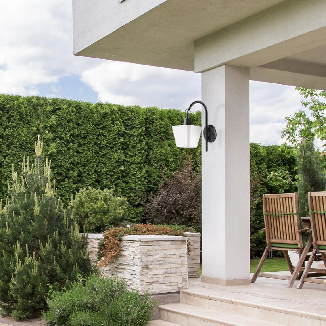 KINKIET ŚCIENNY z serii GIZA to nowoczesna Oprawa zewnętrzno - ogrodowa wykonana z najlepszej jakości metalu oraz tworzywa sztucznego. Prezentowana Lampa ogrodowa z dolnym kloszem to najlepszy wybór oświetlenia elewacji oraz różnych murków lub ścian w naszym ogrodzie. Dzięki jej eleganckiemu designowi nasze ogrody zyskają ciekawszego wyglądu, a wieczorami niesamowitego uroku. Zastosowane materiały gwarantują ochronę IP44 która zapewnia lampie ochronę przed zachlapaniem wodą jak i przed przedmiotami powyżej 1 mm. Oprawa ZEWNĘTRZNA została wyposażona w pojedyncze gniazdo z uniwersalnym gwintem E27 gdzie zalecamy zastosowanie energooszczędnym żarówek LED.