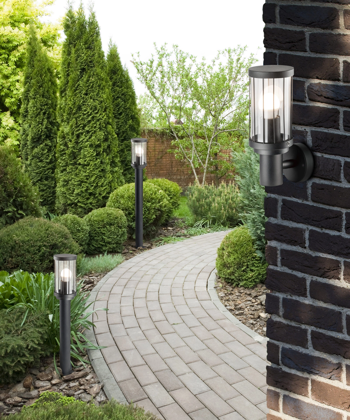 KINKIET ŚCIENNY z serii FIORD to nowoczesna Oprawa zewnętrzno - ogrodowa wykonana z najlepszej jakości stali oraz tworzywa sztucznego. Prezentowana Lampa ogrodowa z górnym walcowym kloszem to najlepszy wybór oświetlenia elewacji oraz różnych murków lub ścian w naszym ogrodzie. Dzięki jej eleganckiemu designowi nasze ogrody zyskają ciekawszego wyglądu, a wieczorami niesamowitego uroku. Zastosowane materiały gwarantują ochronę IP44 która zapewnia lampie ochronę przed zachlapaniem wodą jak i przed przedmiotami powyżej 1 mm. Oprawa ZEWNĘTRZNA została wyposażona w pojedyncze gniazdo z uniwersalnym gwintem E27 gdzie zalecamy zastosowanie energooszczędnym żarówek LED.