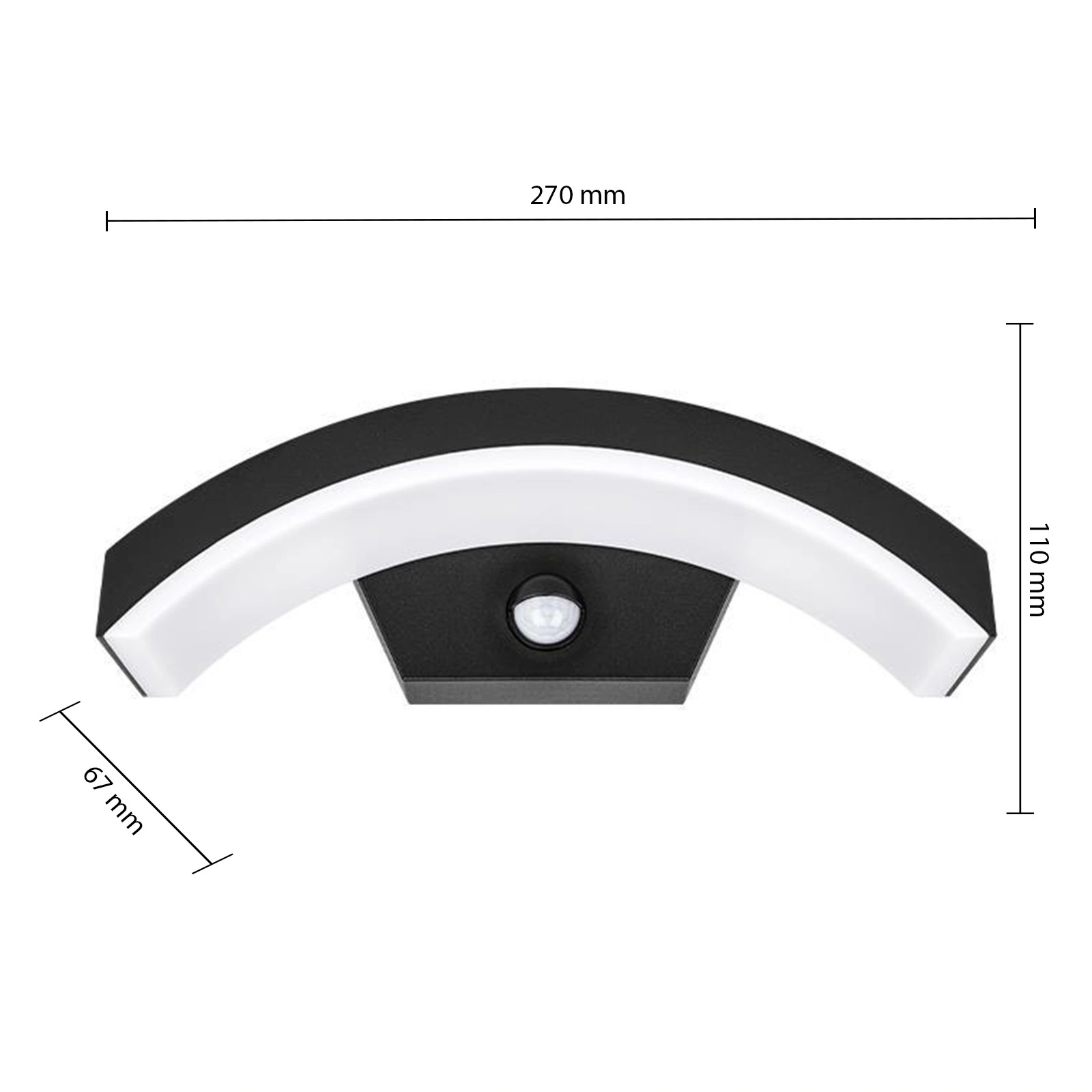Kinkiet Ogrodowy Elewacyjny Lampa Ścienna LED 9W z Czujnikiem Ruchu i Zmierzchu Czarna BELLA