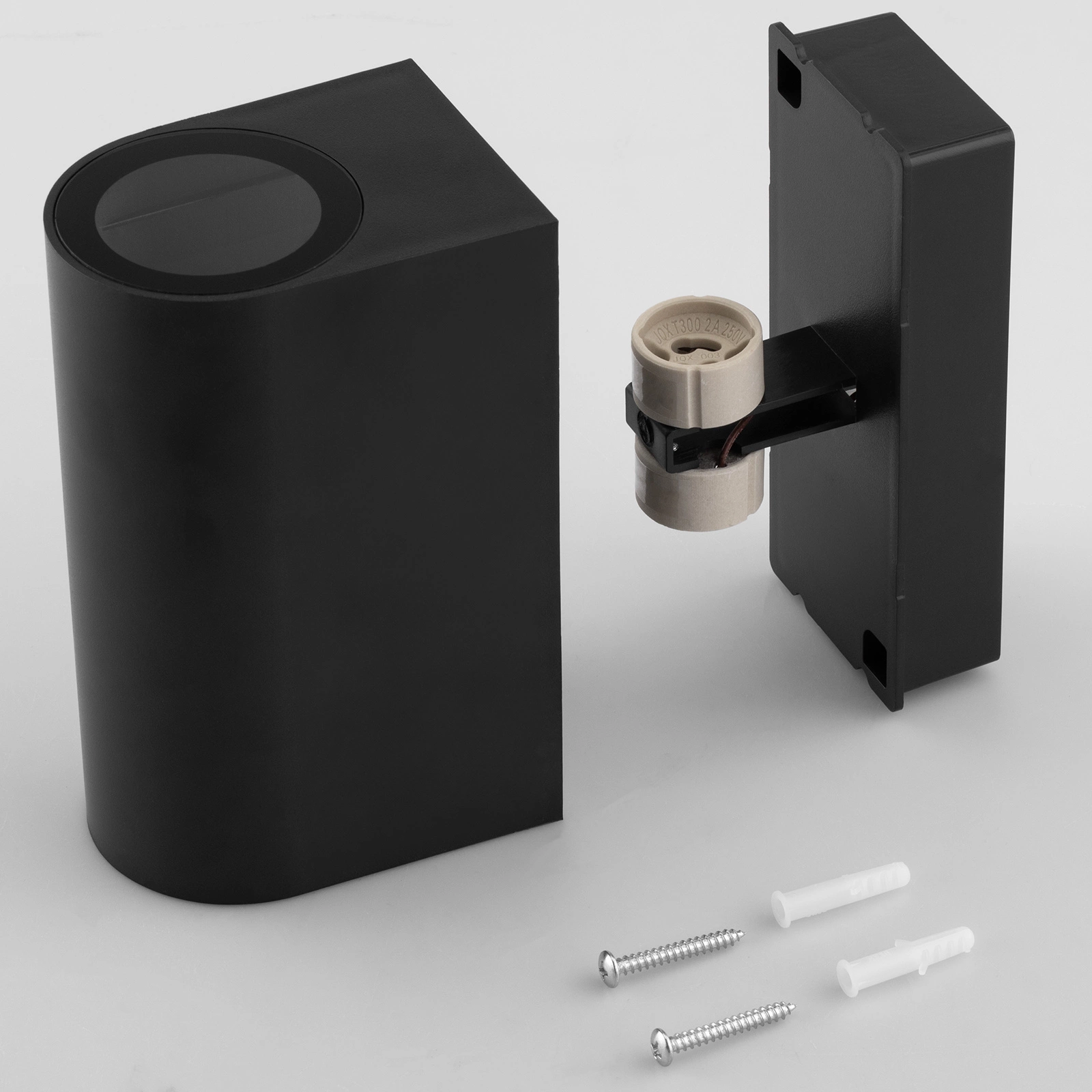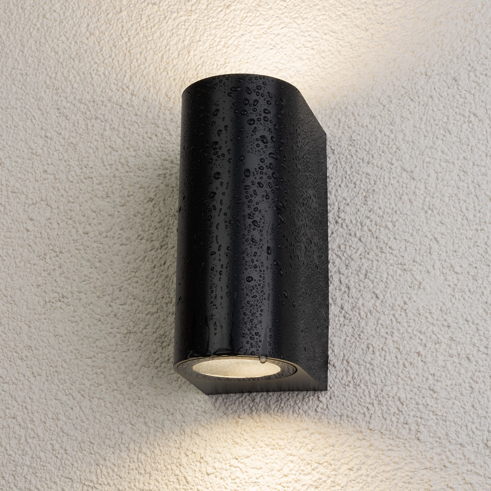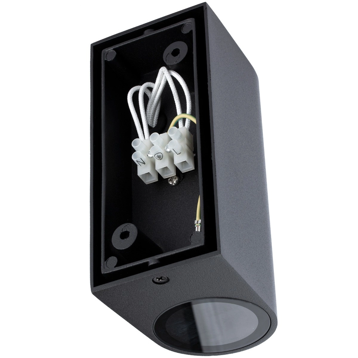 Nowoczesny kinkiet elewacyjny przedstawiony na zdjęciu wyróżnia się minimalistycznym designem oraz solidnym wykonaniem. Jego czarna, matowa obudowa nadaje mu elegancki wygląd, który doskonale komponuje się z nowoczesnymi aranżacjami zewnętrznymi. Kinkiet wyposażony jest w dwa źródła światła z trzonkiem GU10, co pozwala na zastosowanie energooszczędnych żarówek LED.