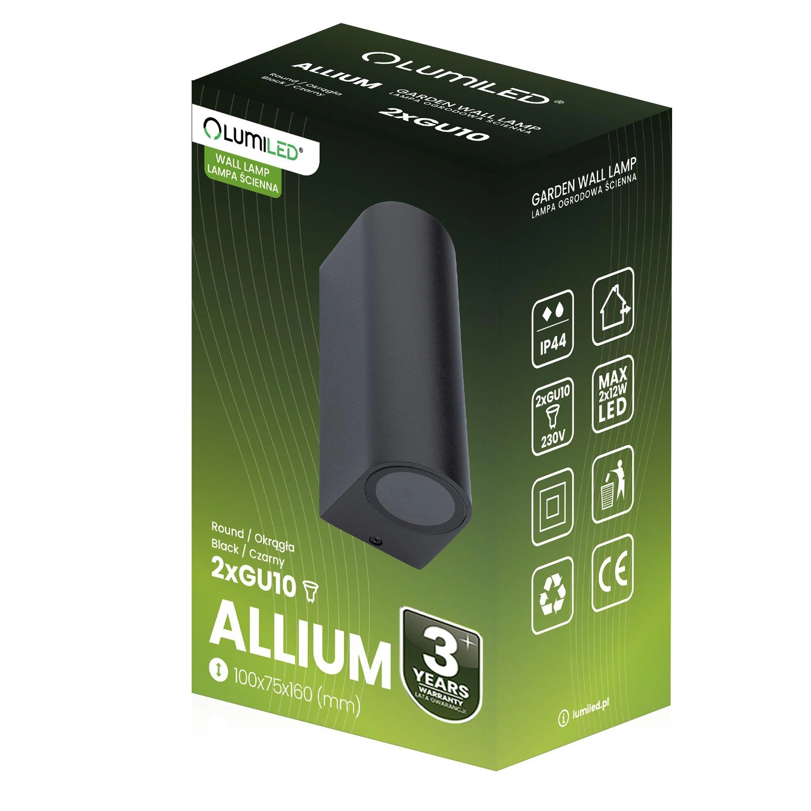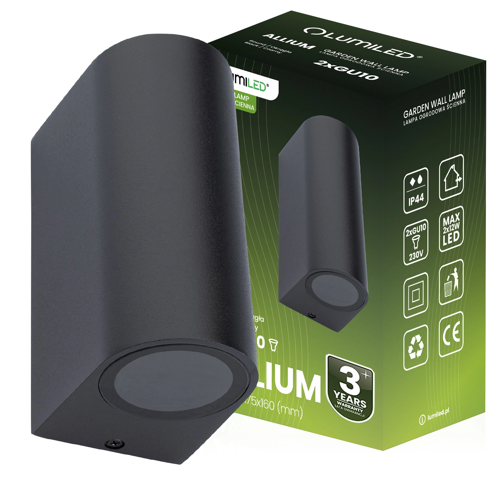 Kinkiet Ogrodowy Elewacyjny Lampa Zewnętrzna 2xGU10 ALLIUM Czarna LUMILED