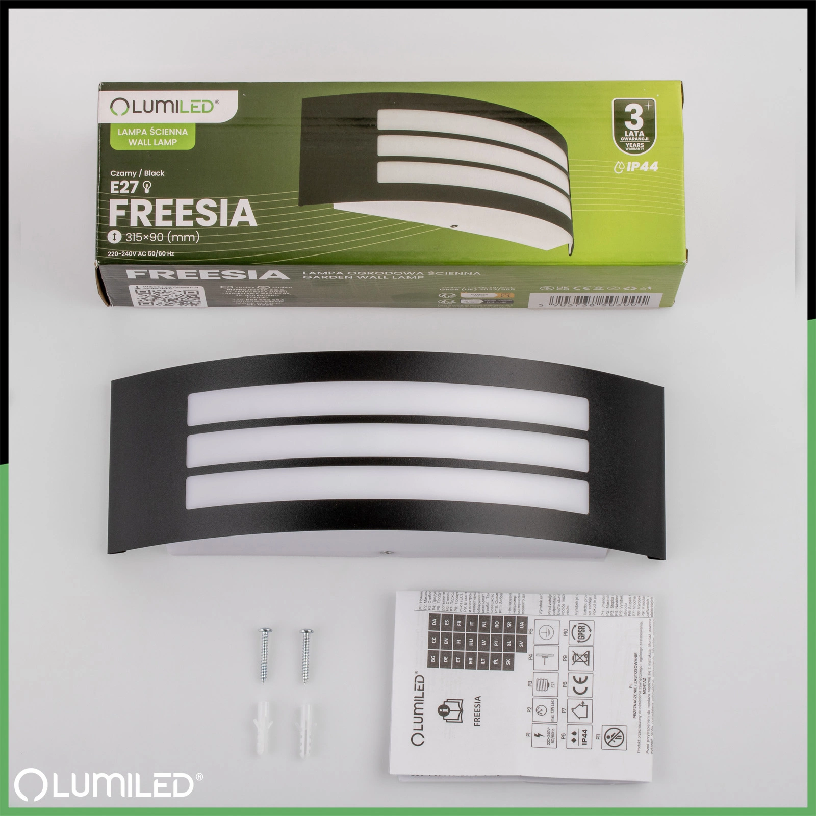 Kinkiet Ogrodowy Elewacyjny Lampa Zewnętrzna E27 CZARNA IP44 FREESIA LUMILED