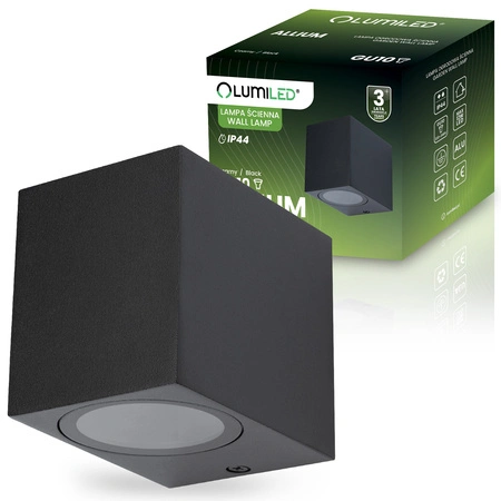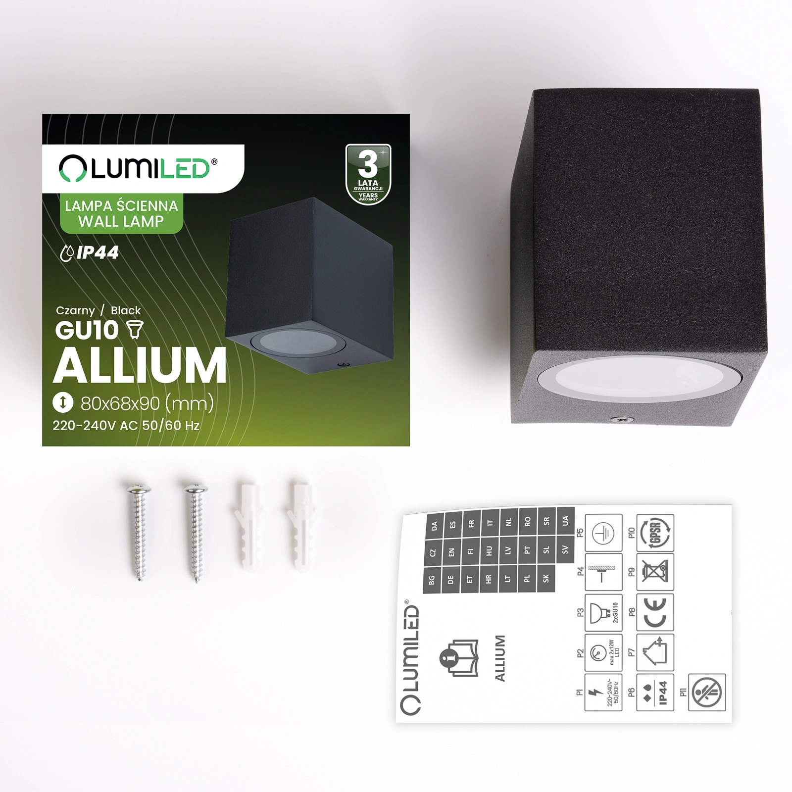 Kinkiet Ogrodowy Elewacyjny Lampa Zewnętrzna GU10 ALLIUM Czarna Kwadrat LUMILED