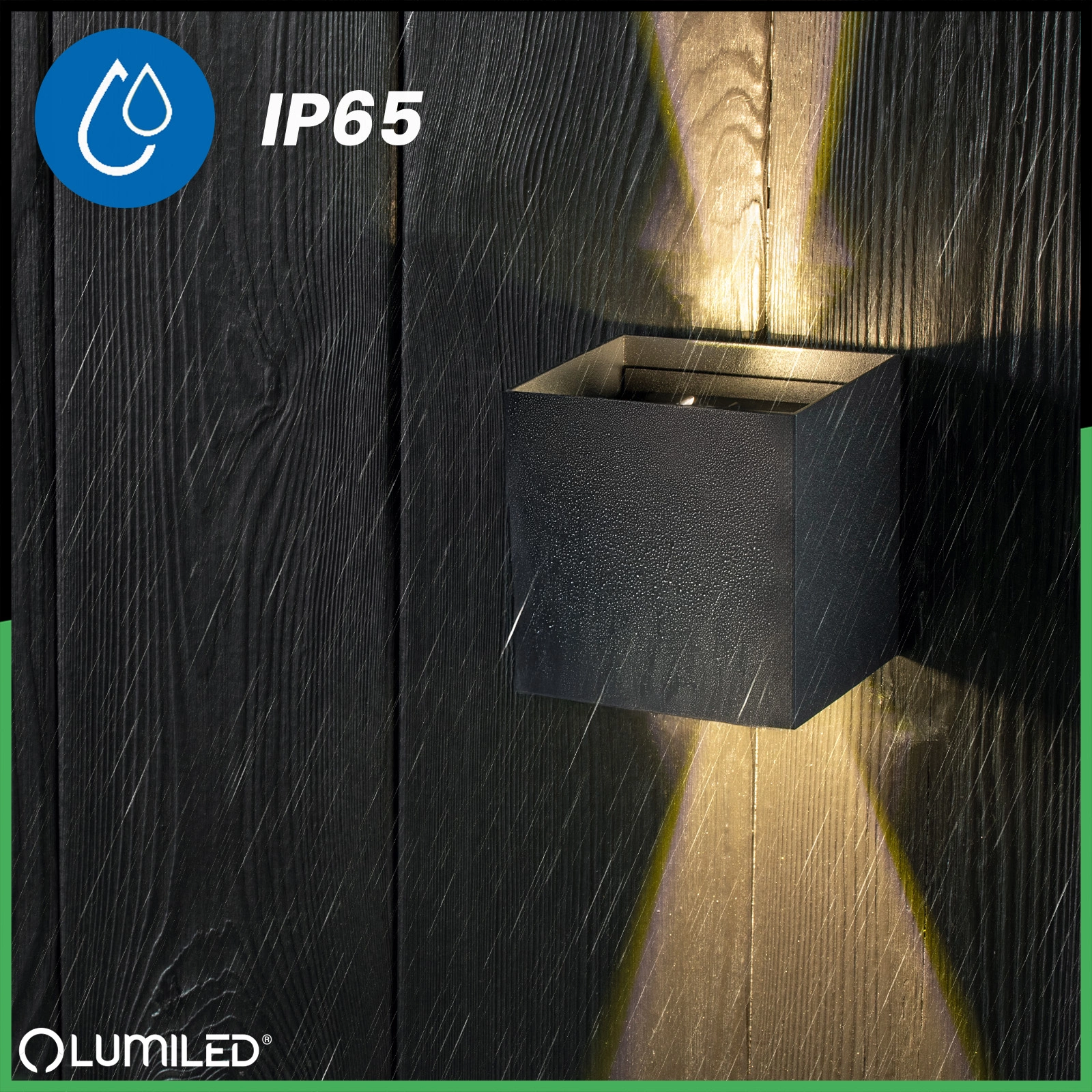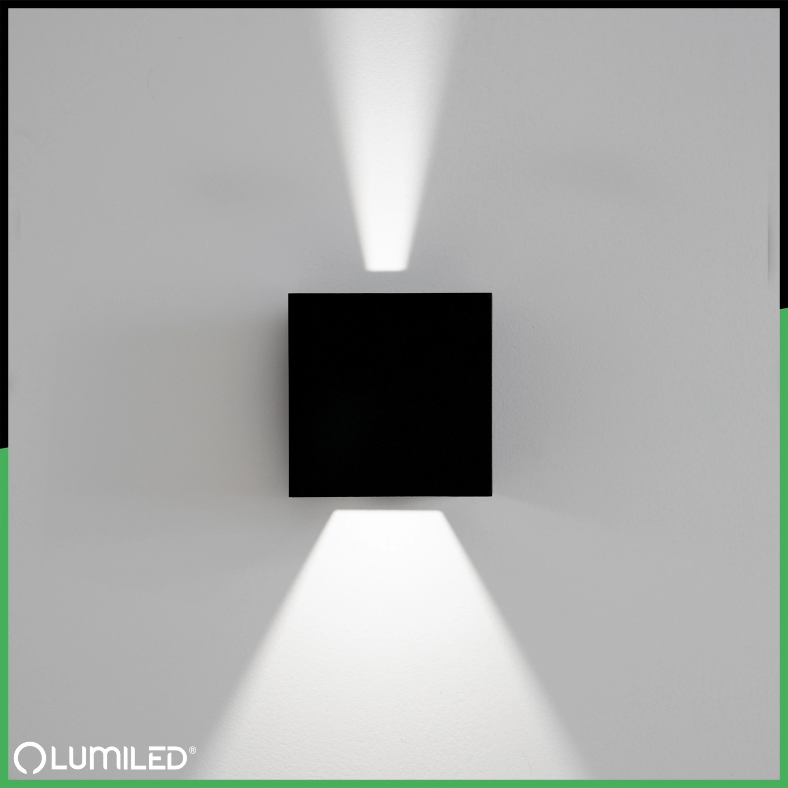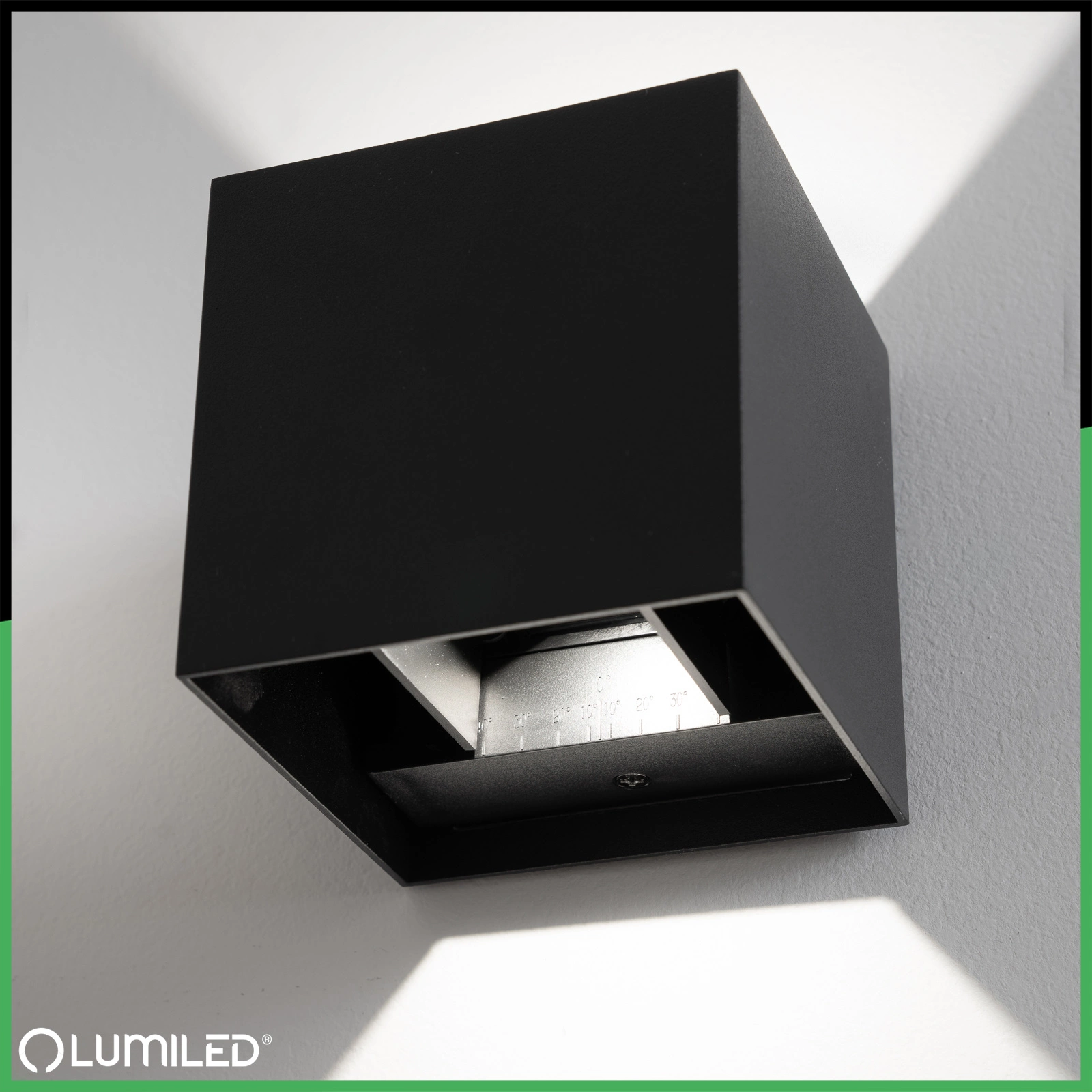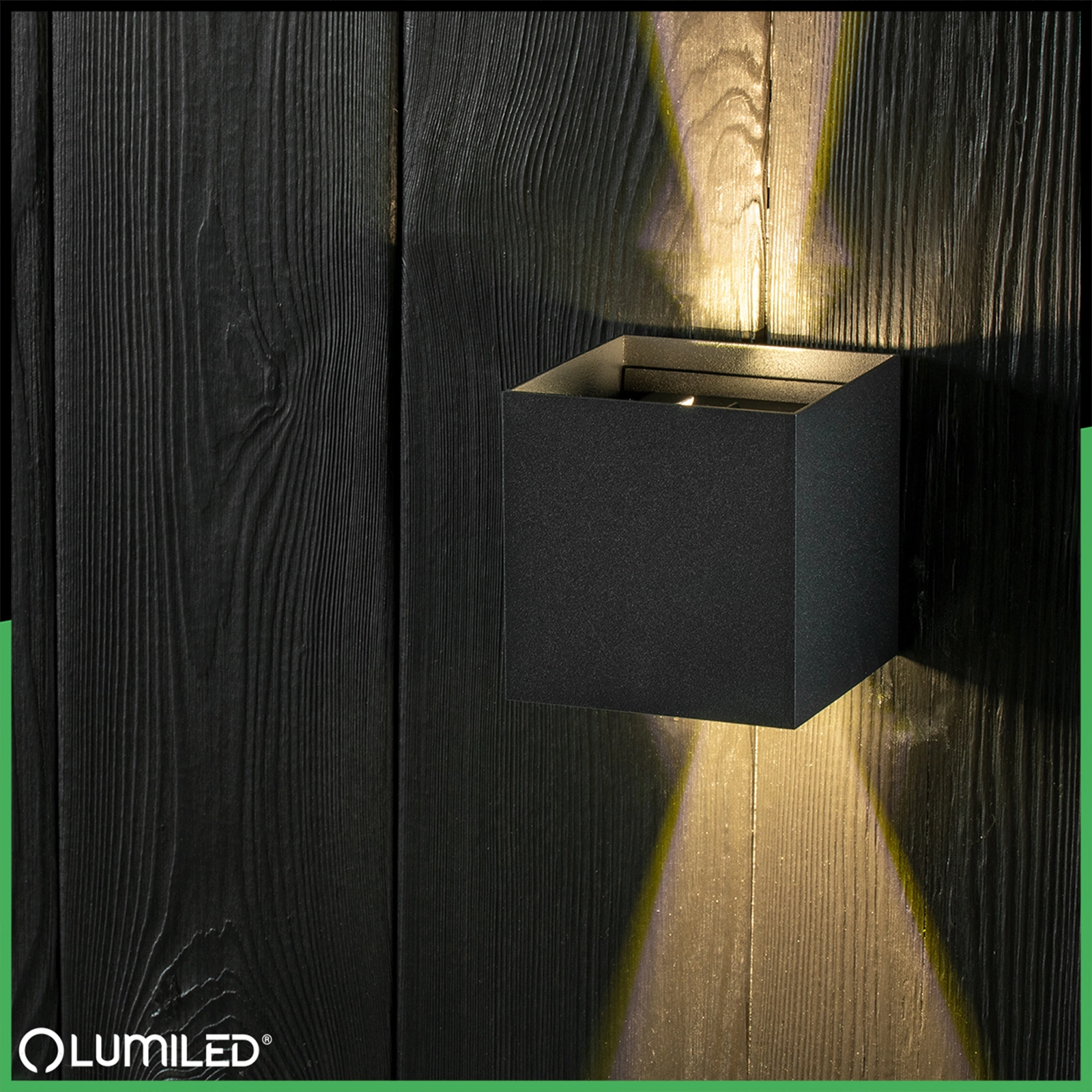 - Regulowane światło góra–dół i energooszczędne LED 2x3W zapewniają efektowną iluminację elewacji i jasność 480 lm przy niskim zużyciu energii.