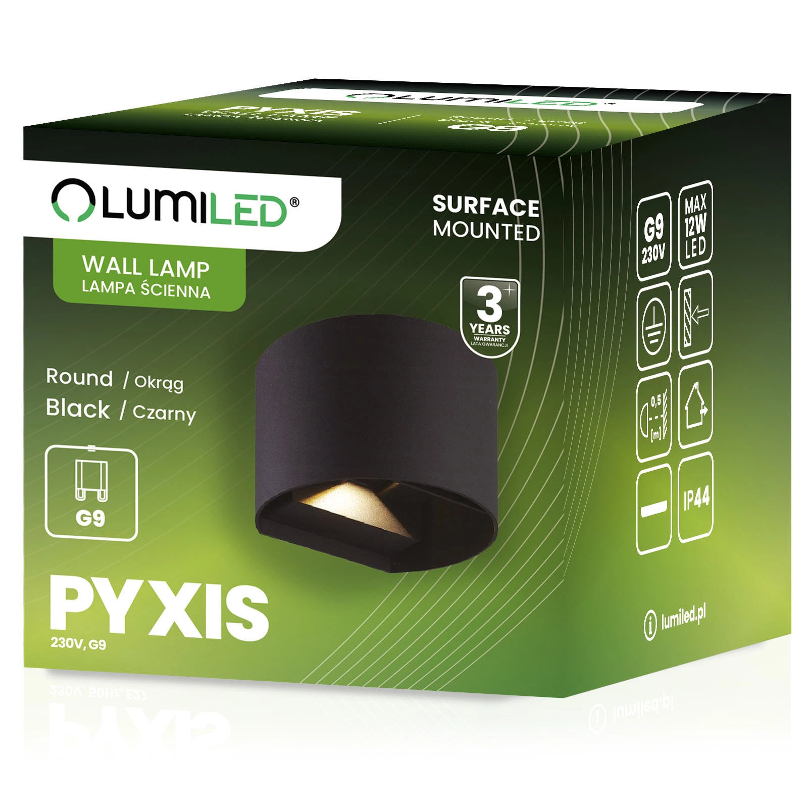 Kinkiet Ogrodowy Elewacyjny LED G9 Regulowany Okrągły Góra Dół Czarny PYXIS LUMILED