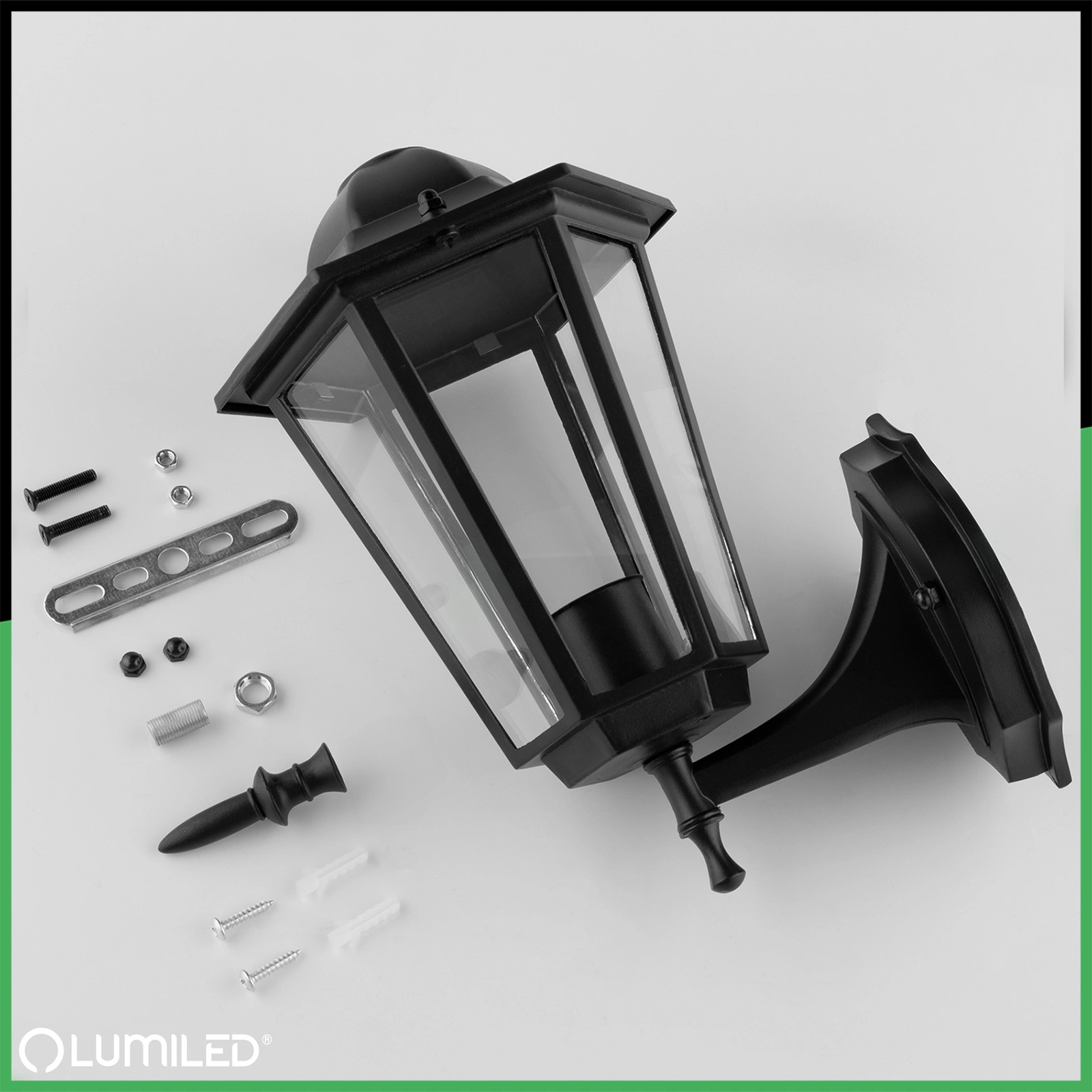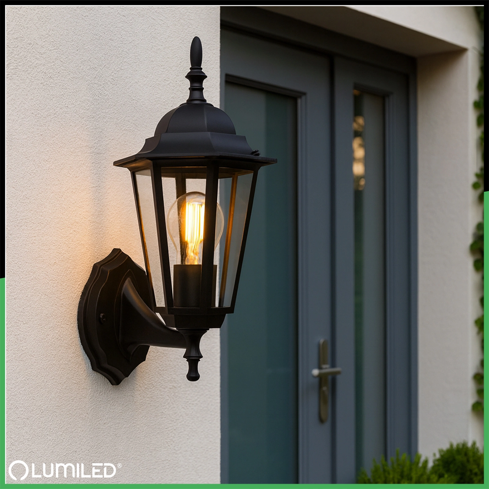 Kinkiet Ogrodowy Elewacyjny Zewnętrzny E27 LATARNIA do GÓRY Czarna BELLIS LUMILED