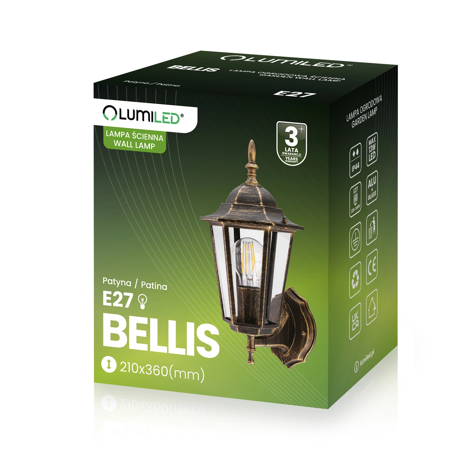 Kinkiet Ogrodowy Elewacyjny Zewnętrzny E27 LATARNIA do GÓRY Patyna BELLIS LUMILED