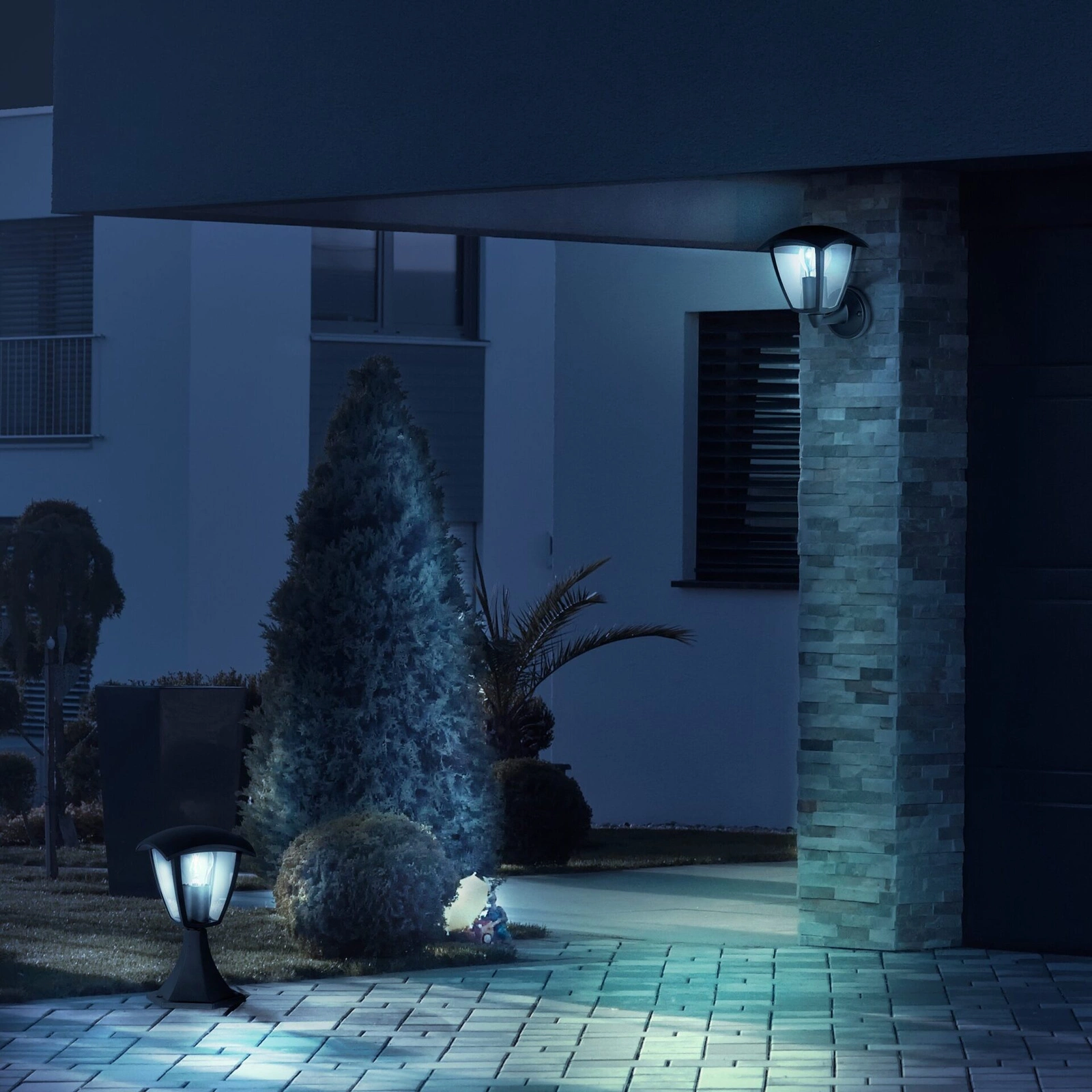 KINKIET ŚCIENNY z serii IGMA to najnowsza Oprawa zewnętrzno - ogrodowa wykonana z najlepszej jakości aluminium oraz tworzywa sztucznego. Prezentowana Lampa ogrodowa z górnym kloszem to najlepszy wybór oświetlenia elewacji oraz różnych murków lub ścian w naszym ogrodzie, dzięki jej nieprzeciętnemu designowi zyskają one niesamowitego uroku. Zastosowane materiały gwarantują ochronę IP44 która zapewnia lampie ochronę przed zachlapaniem wodą jak i przed przedmiotami powyżej 1 mm. Oprawa ZEWNĘTRZNA została wyposażona w pojedyncze gniazdo z uniwersalnym gwintem E27 gdzie zalecamy zastosowanie energooszczędnym żarówek LED.
