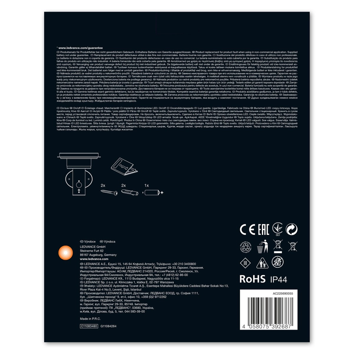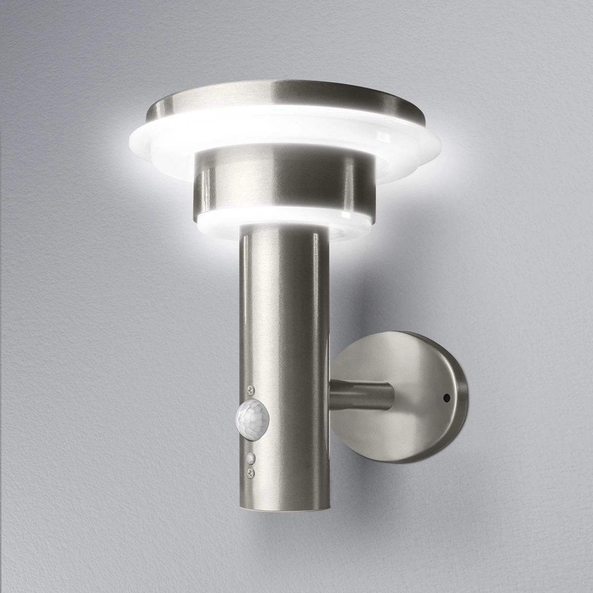 Lampa Ogrodowa Zewnętrzna Kinkiet Elewacyjny LED 6W 400lm 3000K IP44 Srebrny Z Czujnikiem Ruchu i Zmierzchu Endura Ledvance