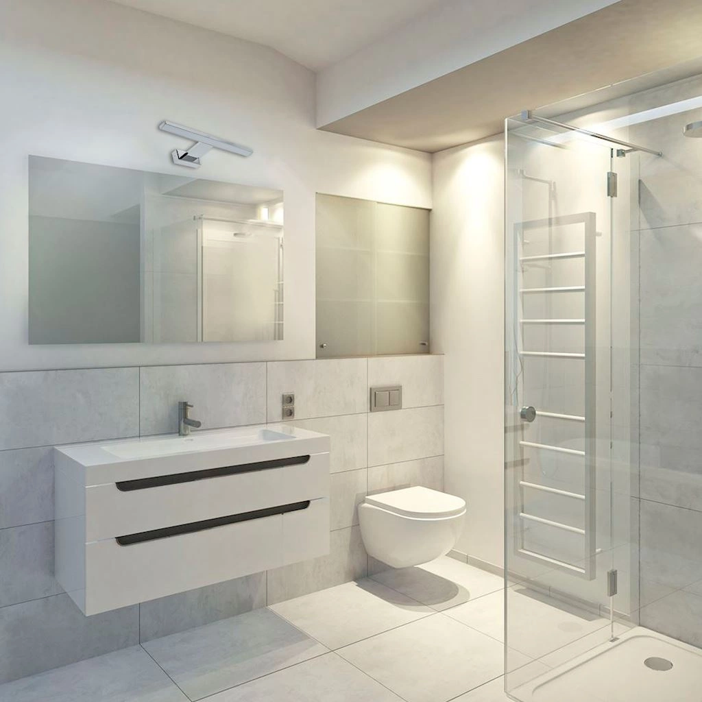 Kinkiet daje neutralne, białe światło. Model SHINE ML029o kształcie wąskiego prostokąta będzie stanowić doskonałe dopełnienie nowoczesnej łazienki. Doskonale nadaje się również do zawieszenia w salonie kosmetycznym. Kinkiet jest przeznaczony do zawieszenia nad lustrem, samodzielnie lub w połączeniu z innymi modelami z kolekcji SHINE.