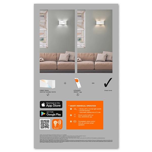 - Możliwość sterowania za pomocą aplikacji LEDVANCE SMART+ (z systemem Android co najmniej 8.0 lub iOS 14.0).