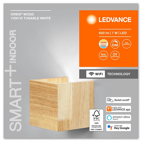 Inteligentna lampa ścienna, kinkiet marki LEDVANCE o mocy 7W będzie oryginalnym dodatkiem do nowoczesnego salonu czy sypialni w minimalistycznym stylu. Zapewnia przyjemne niezbyt intensywne, białe światło. W zależności od planowanej aktywności możemy wybrać jego ciepłą barwę, neutralną lub zimną. Jej obudowa wykonana jest z wysokiej jakości drewna. Dzięki zastosowaniu materiałów wysokiej jakości i staranności wykonania prezentuje się bardzo elegancko. Największą zaletą prezentowanej lampy jest możliwość sterowania jej pracą za pomocą bezpłatnej aplikacji w smartfonie. Po jej pobraniu i zainstalowaniu możemy jednym gestem zmienić barwę w zakresie 2700K-6500K Komplet zawiera akcesoria montażowe i łączące w zestawie. Dzięki temu montaż staje się banalnie prosty i nie wymaga dodatkowych elementów. Słupek jest zasilany bezpośrednim napięciem 220-240V, dzięki czemu lampa nie wymaga montażu dodatkowych urządzeń zasilających.