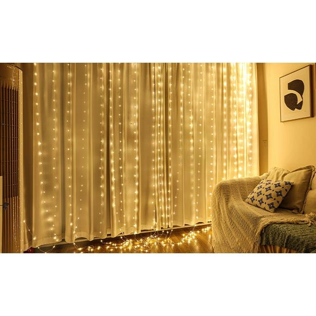 Kurtyna LED to ciekawa propozycja na ozdobę świąteczną, która idealnie wpasuje się w klimat świąteczny. Emituje białe ciepłe światło 2700K. Sterowana jest za pomocą pilota lub przycisku na sterowniku. Posiada 8 trybów świecenia: