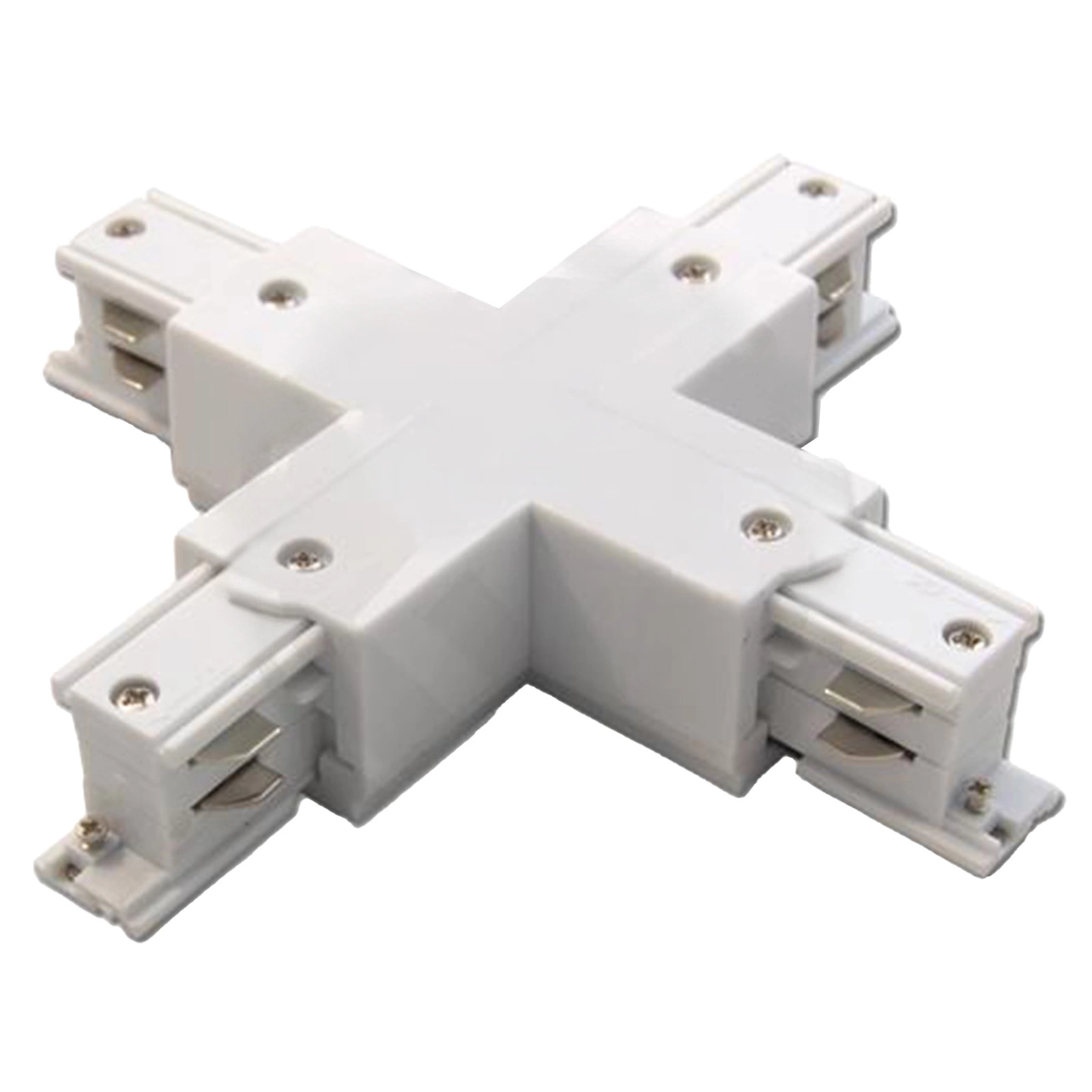 Łącznik Poczwórny Krzyżowy Biały do Listw Szynowych Trójfazowych