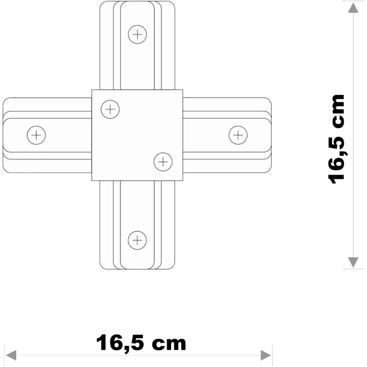 Prezentowany łącznik poczwórny typu x w kolorze czarnym jest elementem oświetlenia szynowego. Umożliwia łączenie ze sobą szynoprzewodów z czterech stron pod kątem 90°. Stosowanie łączników pozwala przedłużyć swój system szyn do lamp szynowych.
