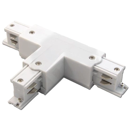 Prezentowany łącznik potrójny w kolorze białym jest elementem oświetlenia szynowego systemu Umożliwia łączenie ze sobą szynoprzewodów szeregowo oraz pod kątem 90°. Stosowanie łączników pozwala przedłużyć swój system szyn do lamp szynowych.