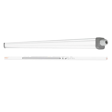 Oprawa hermetyczna DampProof marki LEDVANCE ze zintegrowaną świetlówką LED o dużej mocy 50W która emituje neutralną barwę światła 4000K oraz bardzo silny strumień świetlny 5500lm. Długość oprawy to 150cm, a jej skuteczność świetlna to aż 110 lm/W. Wykonana z wysokiej jakości materiałów OPRAWA LEDVANCE odznacza się wysoką klasą szczelności IP65, dzięki czemu nadaje się ona do montażu na zewnątrz w miejscach gdzie występuje duża wilgoć lub zapylenie. Oprawa ta doskonale sprawdzi się jako oświetlenie główne w pomieszczeniach przemysłowych jak i magazynowych. Dodatkowo wraz z obudową w zestawie znajdują się klamry ze stali nierdzewnej z wkrętami zabezpieczającymi. Decydując się na zakup prezentowanej oprawy LED otrzymujemy produkt gotowy do montażu, który dzięki profesjonalnemu wykonaniu oraz najlepszej trwałości będzie użytkowany przez bardzo długi czas.