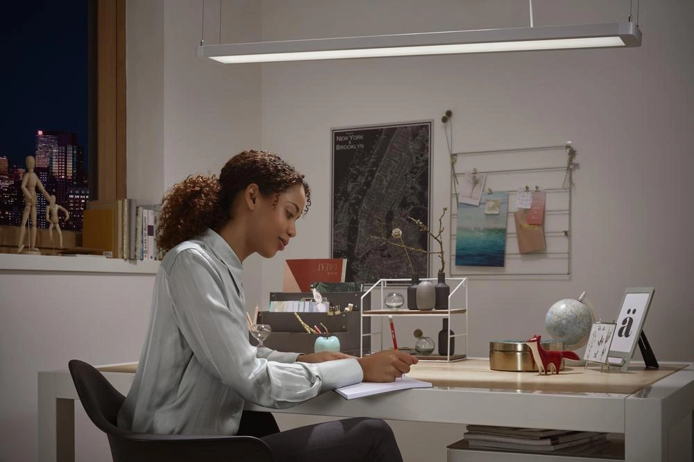 Oprawa oświetleniowa z możliwością ściemniania, do montażu sufitowego i zwieszakowego z rastrem zapobiegającym olśnieniu. Cechy produktu: Zamiennik tradycyjnych opraw świetlówkowych T8. Do montażu sufitowego lub na zwieszakach. Materiał: aluminium (obudowa), poliwęglany (dyfuzor). Trwałość: do 25 000 h. Wersja z możliwością ściemniania: ściemnianie trzypoziomowe przełączane poprzez wielokrotne przełączanie. Wersja GRID z dostarczoną listwą do sufitów modułowych. Dostępne długości: 0,6 m, 1,2 m. Temperatura barwowa: 4000 K. Korzyści ze stosowania produktu: Oszczędność energii dzięki 3-stopniowemu przyciemnianiu. Uniwersalne możliwości montażu. Funkcjonalna konstrukcja i minimalistyczny wygląd. Obszar zastosowań: Zastosowania wewnętrzne. Biura w domu. Ogólne oświetlenie wnętrz. Kuchnie, przestrzenie robocze. Wyposażenie / Akcesoria: Akcesoria do montażu podwieszanego w zestawie.