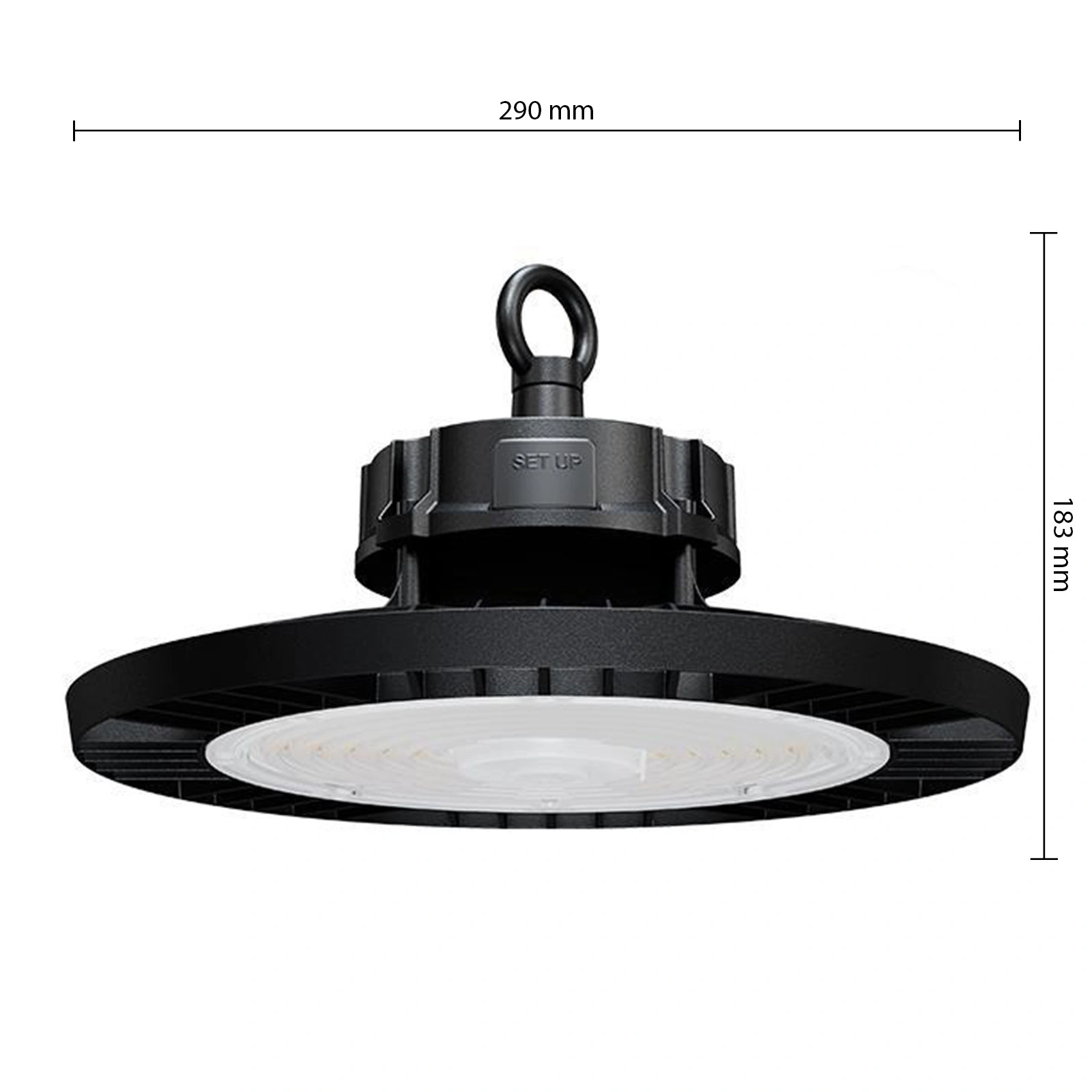 Odkryj doskonałą jakość światła z naszą przemysłową lampą LED High Bay 200W! Ta zaawansowana technologicznie lampa oferuje imponujący strumień świetlny wynoszący 30000 lm, zapewniając najwyższą skuteczność świetlną na poziomie 150 lm/W. Idealna do oświetlenia zarówno przestrzeni wewnętrznych, jak i zewnętrznych, dzięki stopniowi ochrony IP65 chroniącemu przed kurzem i wilgocią. Posiada kąt rozsyłu światła 90°, co gwarantuje perfekcyjne rozprowadzenie światła w każdym pomieszczeniu.
