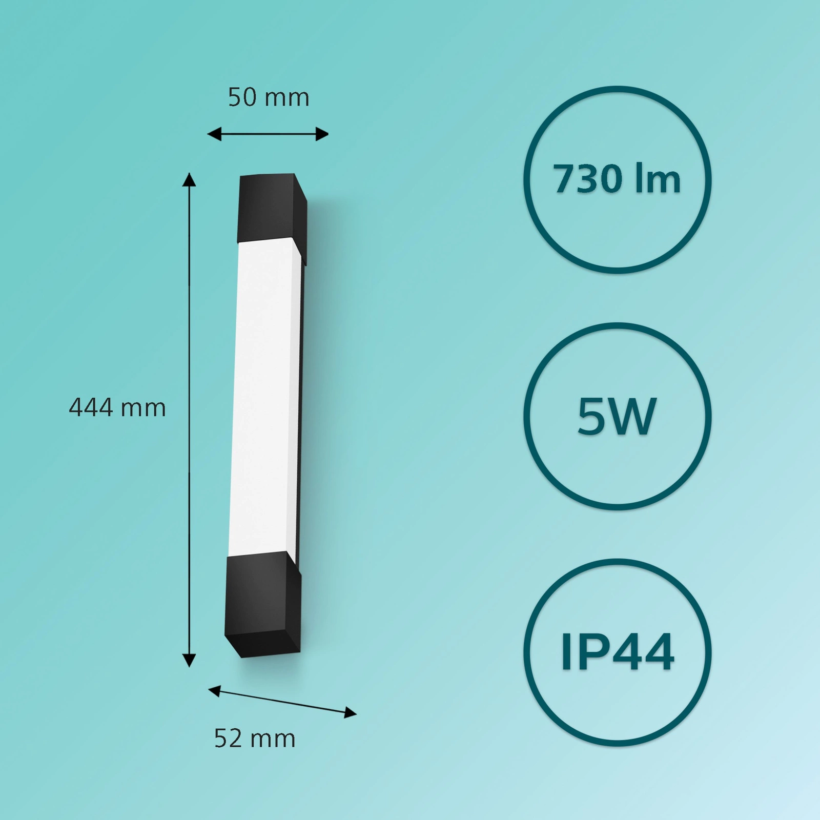 Odkryj nowoczesne rozwiązanie oświetleniowe z lampą nad lustro LED 5W marki Philips. Model Rover o mocy 5W oferuje optymalny strumień świetlny na poziomie 730 lumenów, co gwarantuje jasne i równomierne oświetlenie przestrzeni. Dzięki przyjemnej temperaturze barwowej 2700K lampa zapewnia ciepłe, relaksujące światło, idealne do łazienek czy sypialni. Długość 44 cm oraz minimalistyczny, czarny design sprawiają, że produkt idealnie wpasowuje się w styl nowoczesny i daje elegancki, współczesny wygląd każdemu pomieszczeniu. Lampa posiada stopień ochrony IP44, co czyni ją odpowiednią do użytku w miejscach narażonych na wilgoć, takich jak łazienki. Dzięki trwałości na poziomie 25000 godzin oraz ponad 50000 cykli włącz/wyłącz, produkt jest nie tylko estetyczny, ale także wytrzymały i funkcjonalny. Wysoka wartość CRI 80 zapewnia doskonałe odwzorowanie kolorów. Produkt przystosowany jest do napięcia 220-240V, co czyni go uniwersalnym w zastosowaniu. Wybierz lampę Philips Rover, by cieszyć się niezawodnym oświetleniem, które łączy w sobie nowoczesny styl z wyjątkową funkcjonalnością.