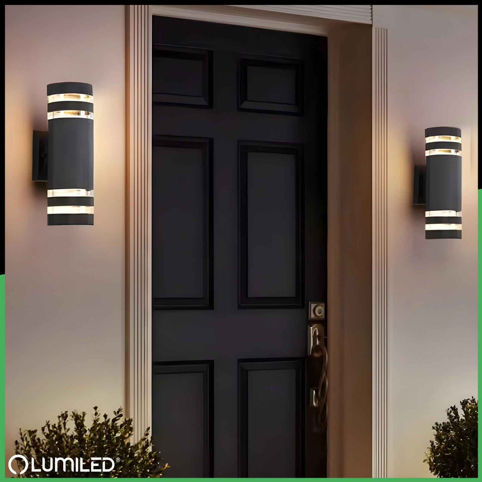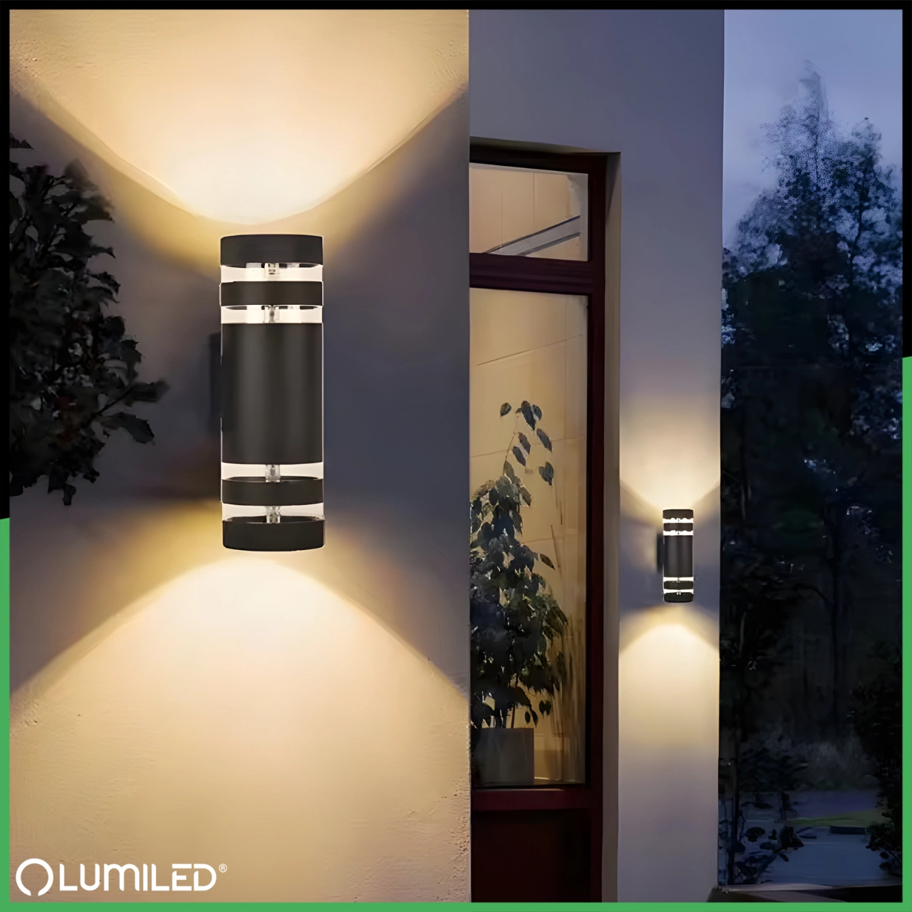 • Dwukierunkowe światło góra–dół – efektowne oświetlenie podkreśla architekturę budynku i tworzy nowoczesny klimat wokół domu.