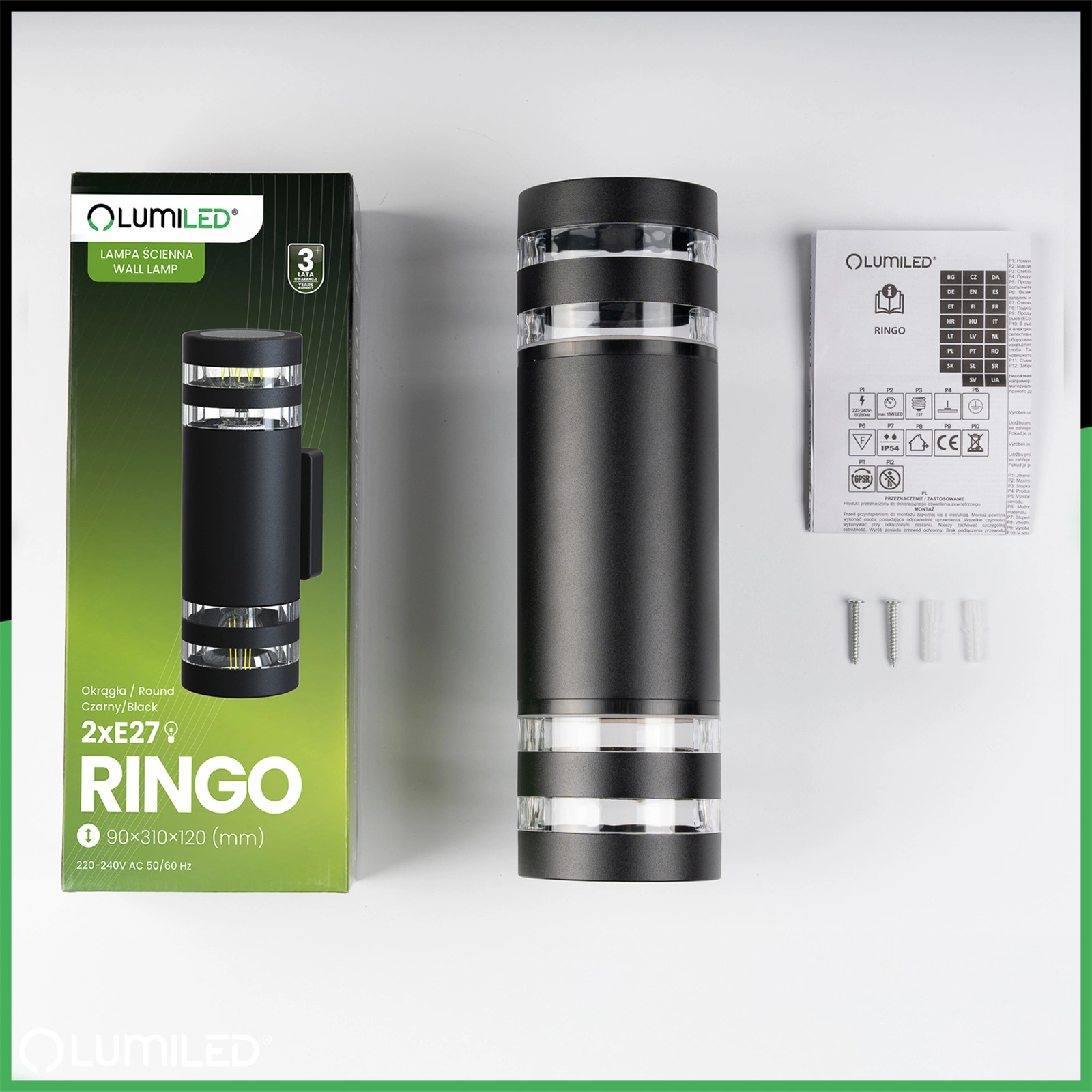 Lampa Ogrodowa Kinkiet Elewacyjny 2x E27 LED Natynkowy Góra Dół RINGO LUMILED - skład produktu