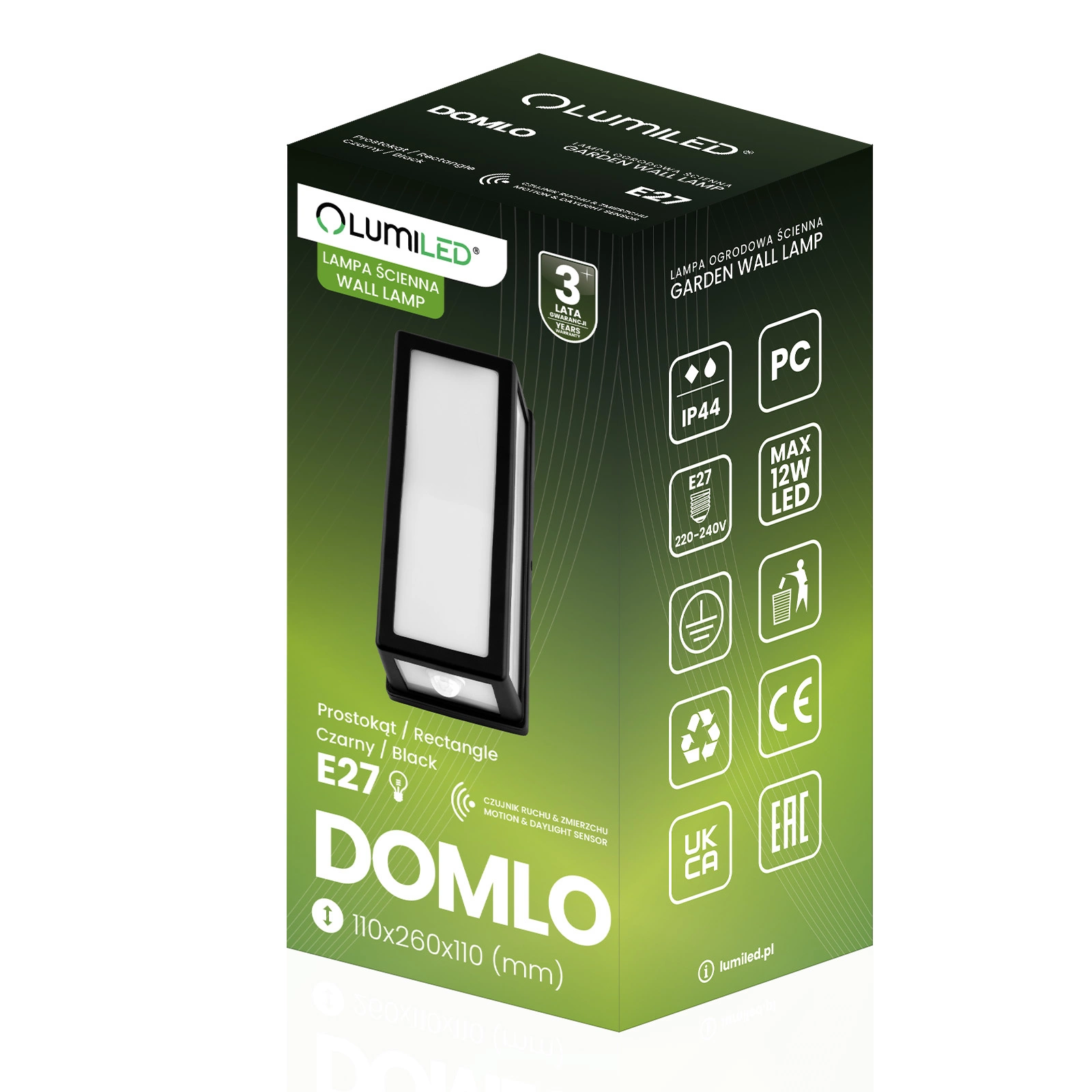 Lampa Ogrodowa Kinkiet Elewacyjny E27 Prostokątny Czujnik Ruchu DOMLO LUMILED