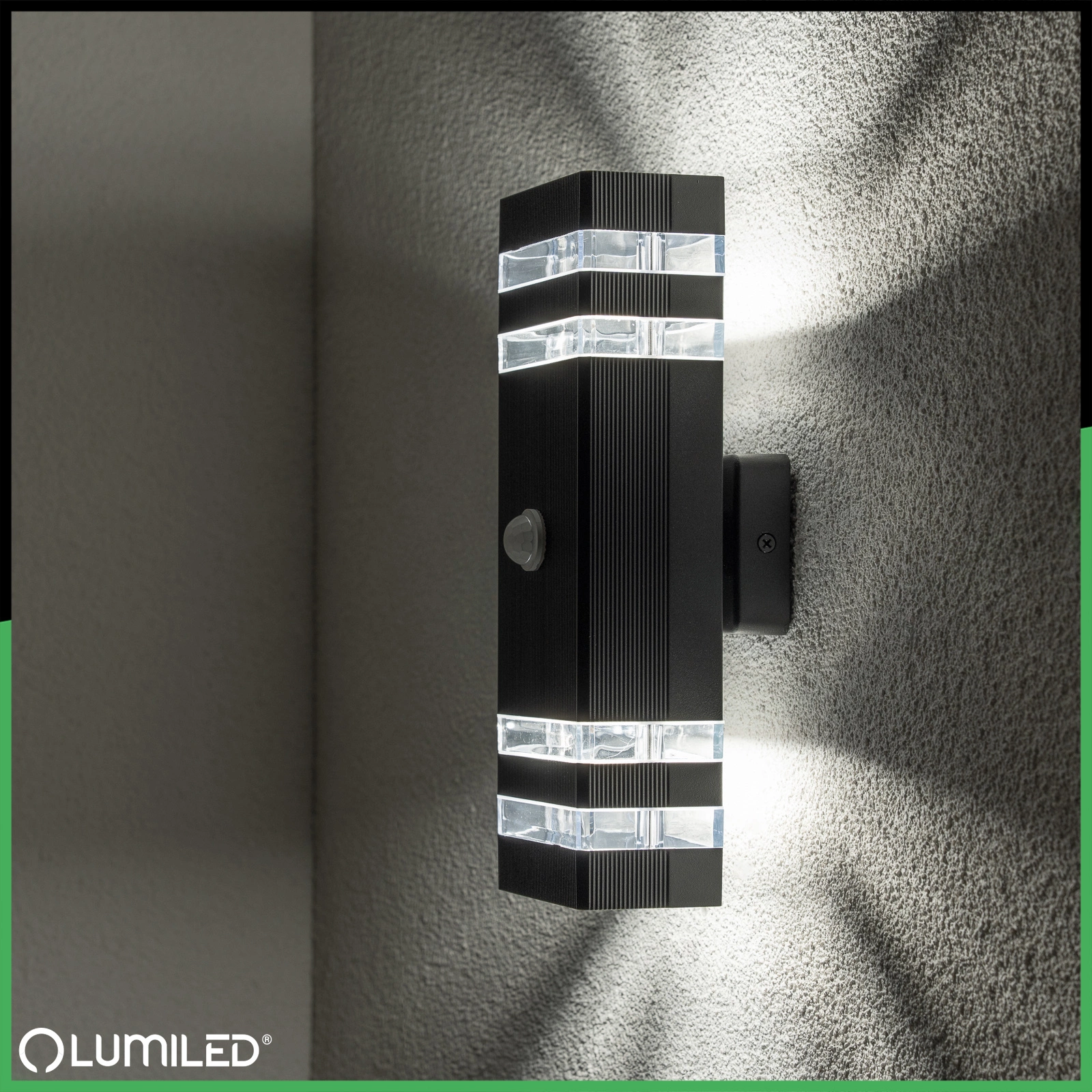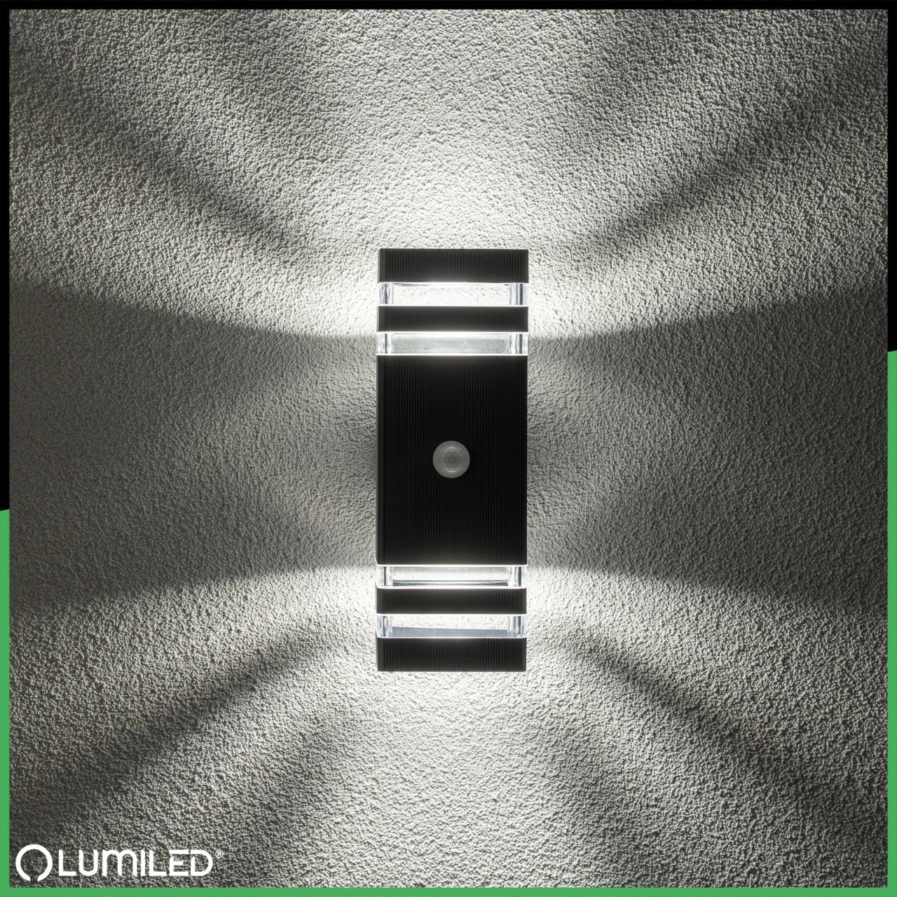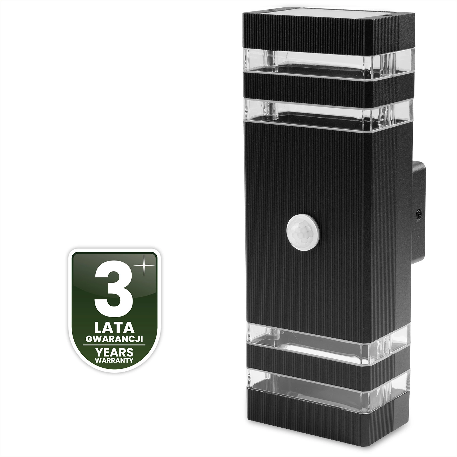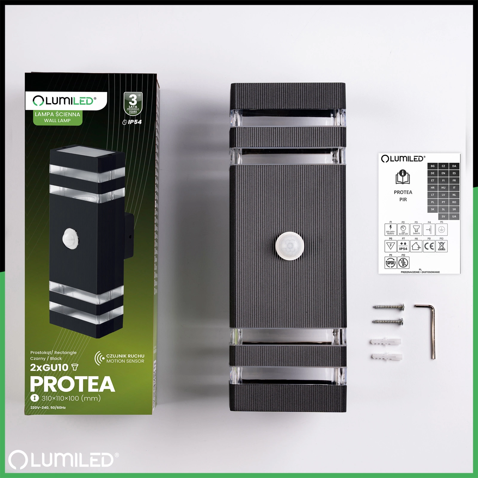 Lampa Ogrodowa Kinkiet Elewacyjny góra dół 2xGU10 Czarny Czujnik Ruchu IP54 PROTEA LUMILED