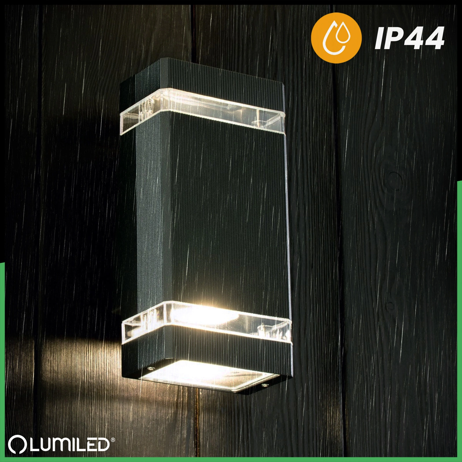 Dzięki klasie szczelności IP44 lampa jest doskonale przystosowana do warunków zewnętrznych – zachlapania, kurz i wilgoć nie mają wpływu na jej działanie. Możesz ją bez obaw zamontować przy drzwiach wejściowych, na elewacji, tarasie czy pod zadaszeniem – zawsze działa niezawodnie, nawet podczas intensywnych opadów. Solidna obudowa skutecznie chroni wnętrze lampy, wydłużając jej żywotność i zapewniając długotrwały efekt wizualny. To pewność działania bez niespodzianek – niezależnie od pogody.