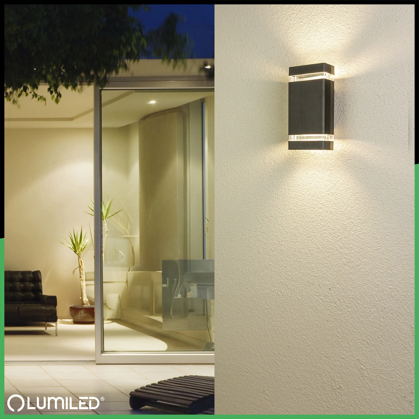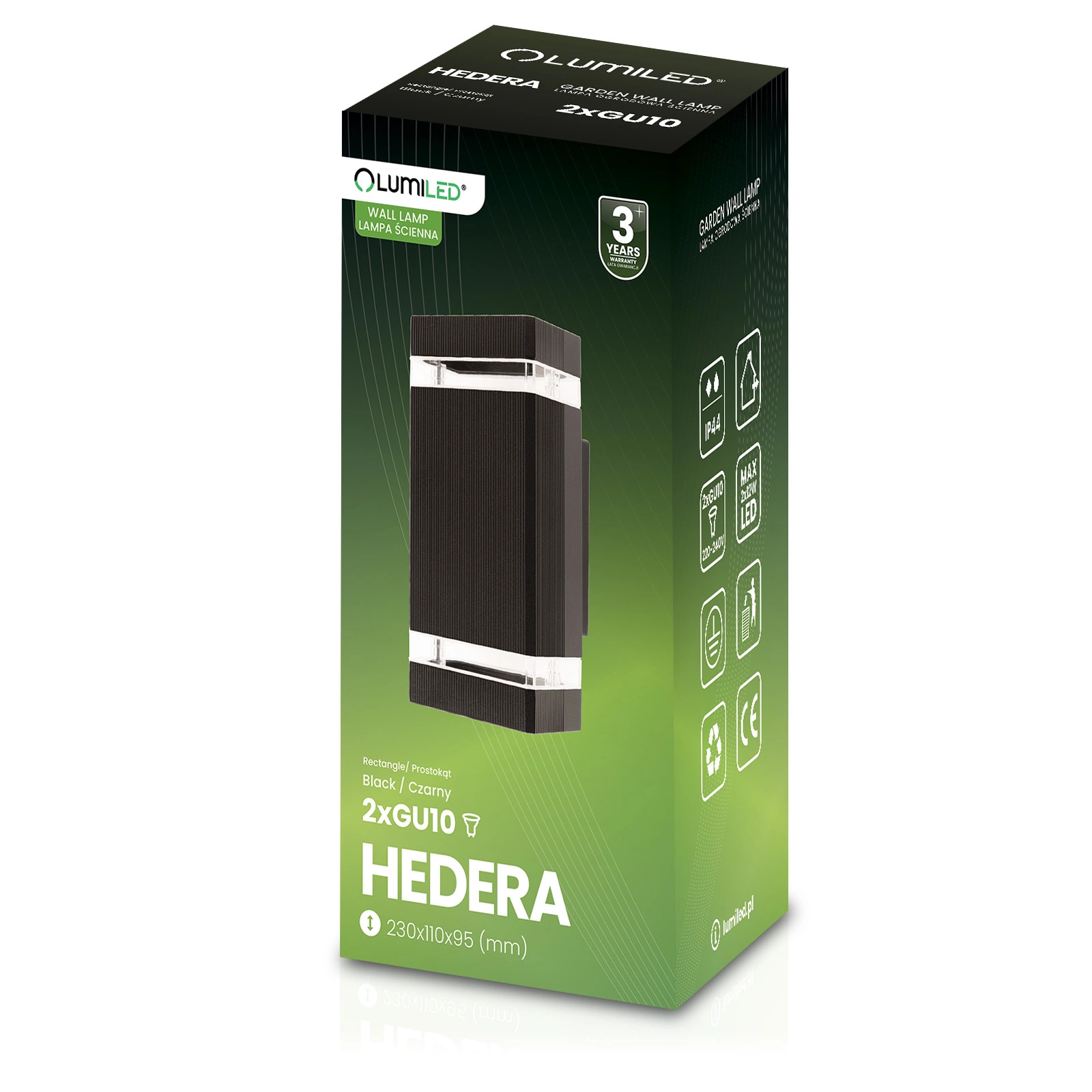 Nowoczesna lampa elewacyjna HEDERA marki Lumiled tworzy efektowny akcent na fasadzie budynku, podkreślając jego architekturę i dodając stylu. Dwukierunkowe światło zwiększa bezpieczeństwo przy wejściach, zapewniając jasne, równomierne oświetlenie po zmroku. Jednocześnie lampa wprowadza przyjemny, klimatyczny nastrój, a solidna, elegancka czarna obudowa gwarantuje trwałość i niezawodne działanie przez wiele lat.