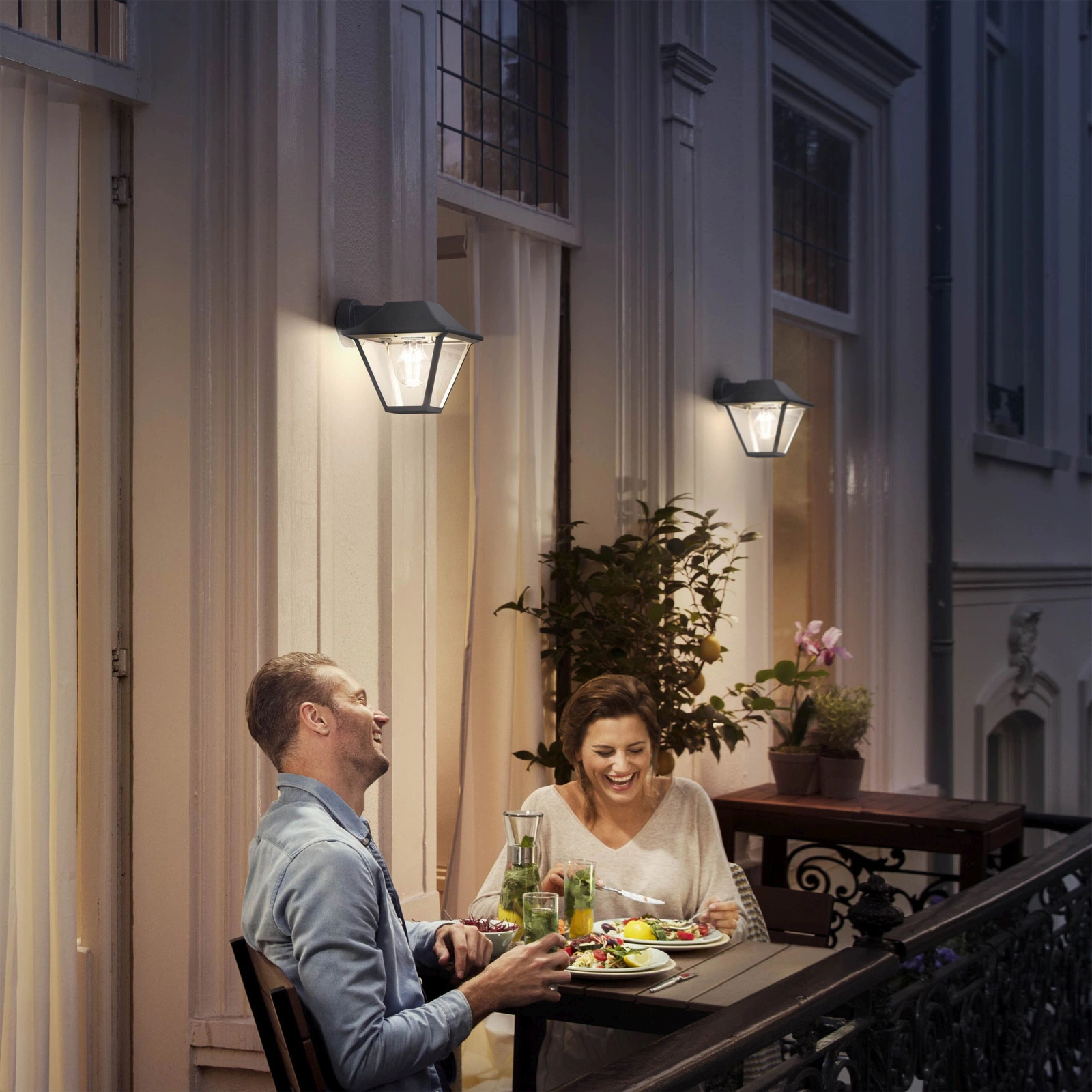 Przedstawiamy kinkiet ogrodowy Philips Alpenglow, idealny do oświetlania fasad budynków oraz zapewniania bezpieczeństwa i estetyki każdej przestrzeni zewnętrznej. Lampa elewacyjna w klasycznym stylu, charakteryzująca się solidnym wykonaniem i wysoką odpornością na warunki atmosferyczne, dzięki klasie ochrony IP44. Wykonana z antracytowych materiałów, doskonale komponuje się z różnorodnymi aranżacjami ogrodowymi. Model ten obsługuje żarówki z gwintem E27 i jest kompatybilny z napięciem 220-240V, co zapewnia wygodne użytkowanie zgodnie z obowiązującymi standardami elektrycznymi. Elektryczny przewód umożliwiający podpięcie do sieci pozwala na szybki montaż, a solidna konstrukcja gwarantuje długotrwałą i bezawaryjną pracę produktu. Kinkiet stanowi nie tylko funkcjonalny element oświetlenia, ale również stylowy akcent dekoracyjny, który wzbogaci wygląd każdego ogrodu czy podwórza.