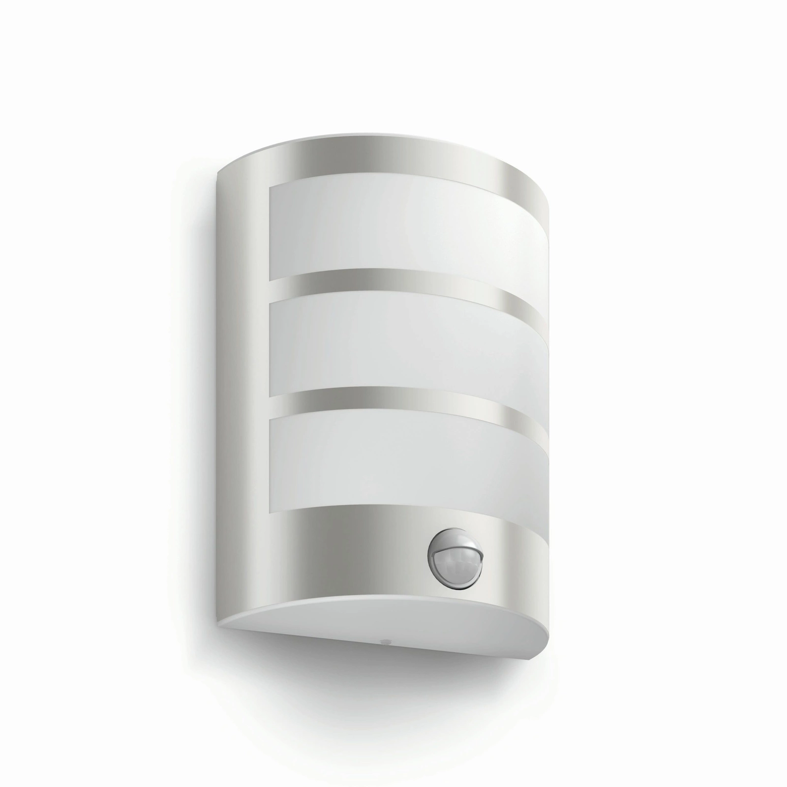 Kinkiet Ogrodowy Lampa Elewacyjna Zewnętrzna LED 6W 600lm 2700K z Czujnikiem Ruchu i Zmierzchu Srebrna IP44 Python Philips