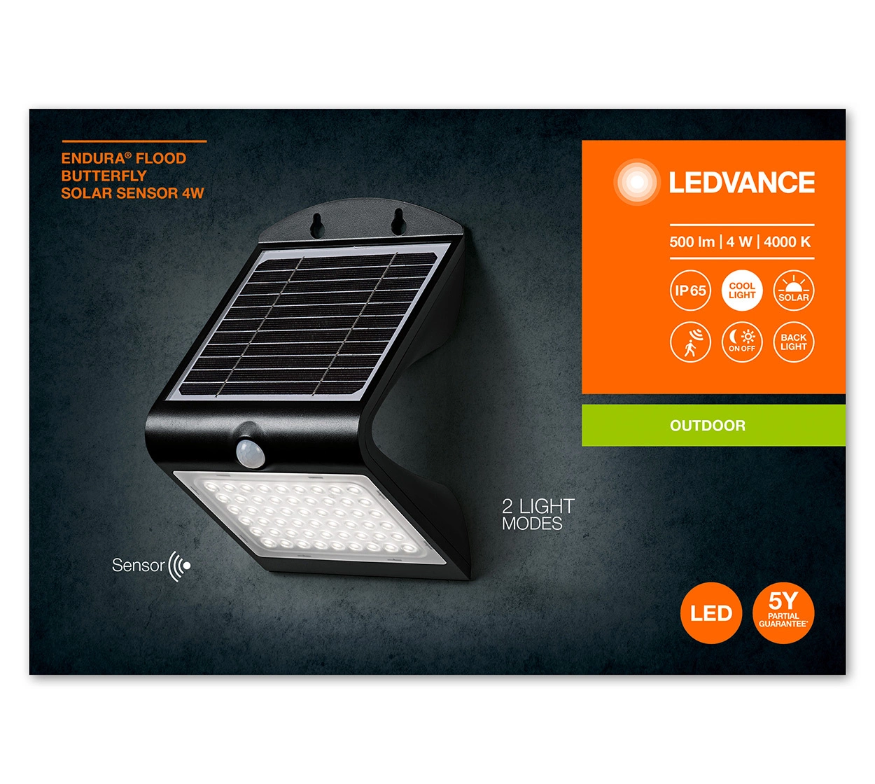 Lampa Solarna Ogrodowa LED Kinkiet Elewacyjny Zewnętrzny 4W 500lm 4000K IP65 Czarny z Czujnikiem Ruchu i Zmierzchu Endura Ledvance
