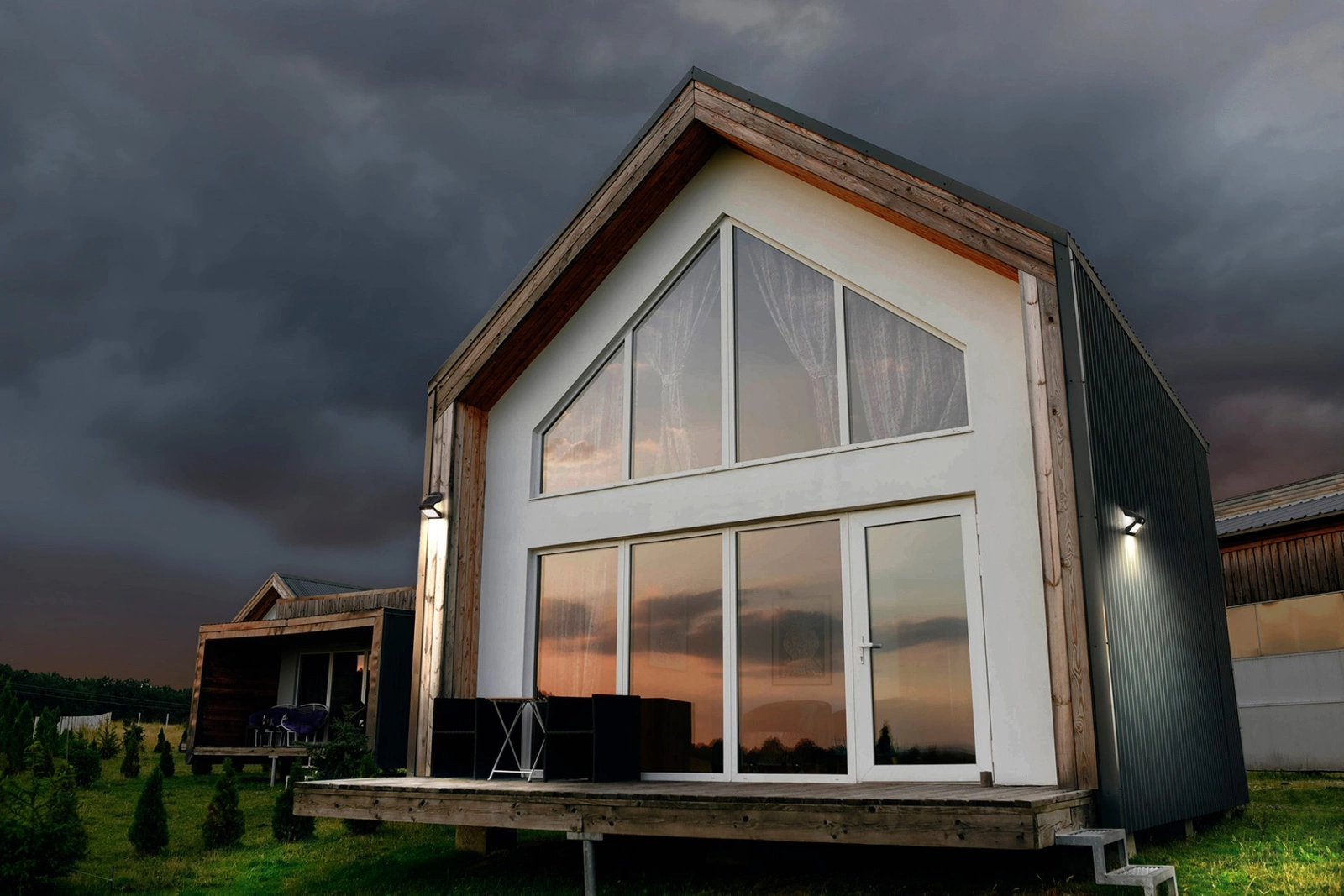 - Architektoniczne uzupełnienie elewacji: nowoczesny design lampy podkreśla styl domu, dodając mu elegancji.