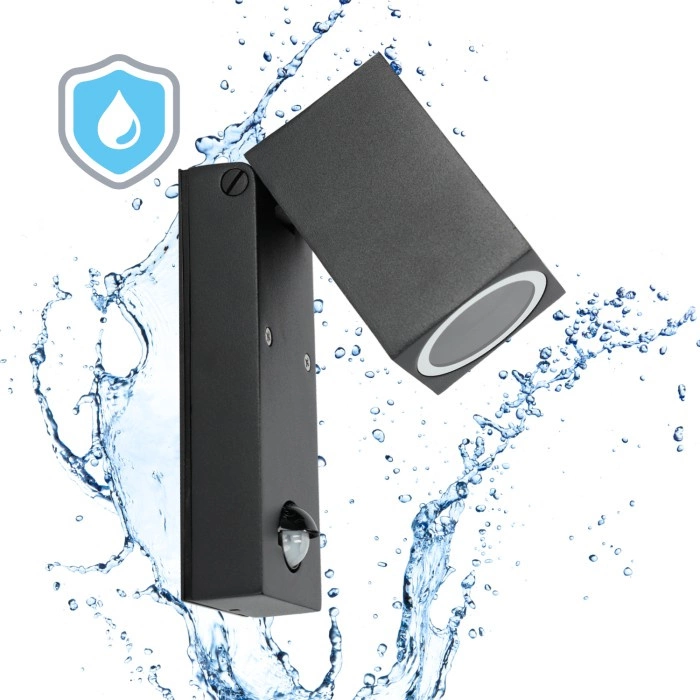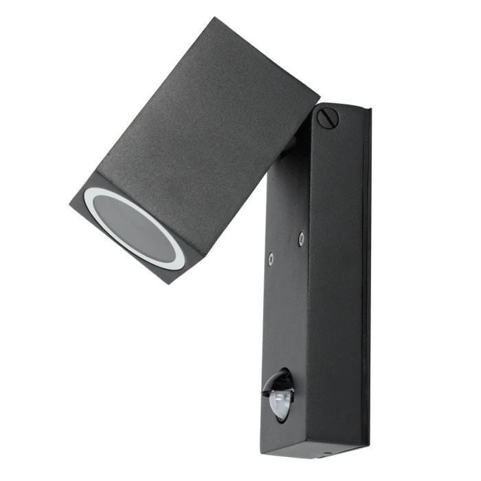 Ta lampa elewacyjna jest wyposażona w zaawansowany czujnik ruchu, który zwiększa bezpieczeństwo na terenie posesji oraz umożliwia bardziej efektywne zarządzanie energią. Z łatwością dostosujesz kąt padania światła dzięki regulowanej głowicy, co pozwala na precyzyjne oświetlenie wybranych miejsc. Wymienne źródło światła typu GU10 umożliwia personalizację barwy światła, co sprawia, że lampa ta nie tylko zdobi otoczenie, ale także tworzy przyjemną atmosferę. Maksymalna moc pojedynczego źródła światła wynosi 35 W, co gwarantuje intensywne i równomierne oświetlenie obszaru.
