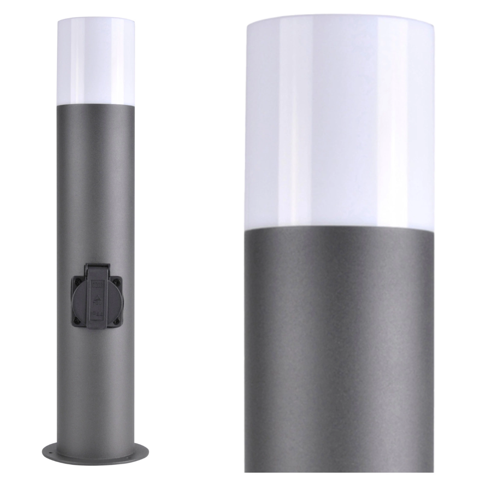Lampa Ogrodowa LED Słupek E27 TUBA Grafit 44cm + Gniazdo zasilające 230V IP44 DALLAS Goldlux