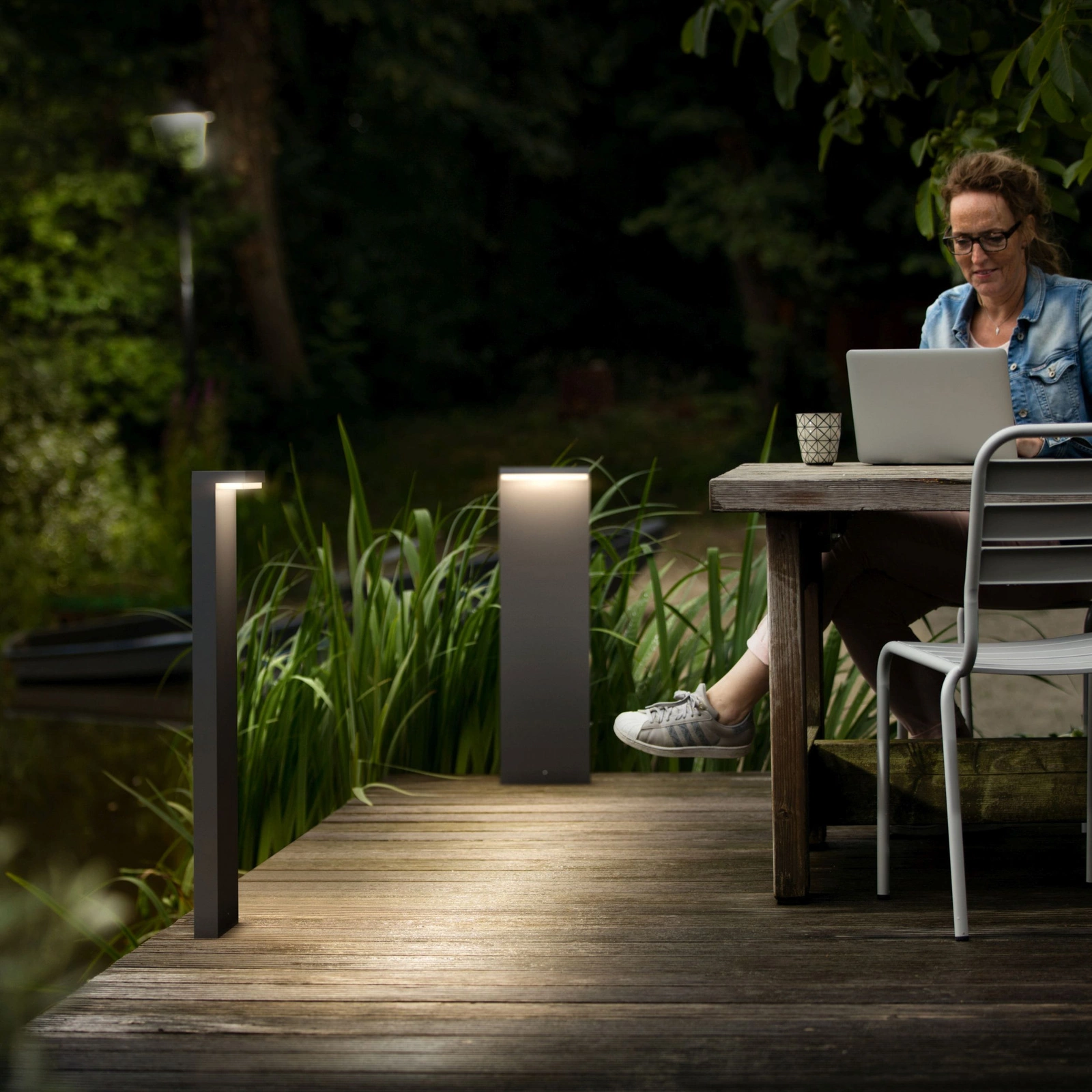 Lampa o kształcie słupka LED Philips Bustan w eleganckim odcieniu antracytowym, wykonana z wysokiej jakości aluminium, stanowi doskonałe uzupełnienie każdego ogrodu dzięki swojej minimalistycznej konstrukcji. Jest to lampa o niezwykle niskim zużyciu energii - zaledwie 3,8 W, co w połączeniu z długim czasem żywotności wynoszącym 50 000 godzin, pozwala na oszczędności i redukcję emisji CO2. Dzięki jasności 800 lumenów i ciepłej, białej barwie światła, ta lampa zapewnia odpowiednie oświetlenie na zewnątrz.