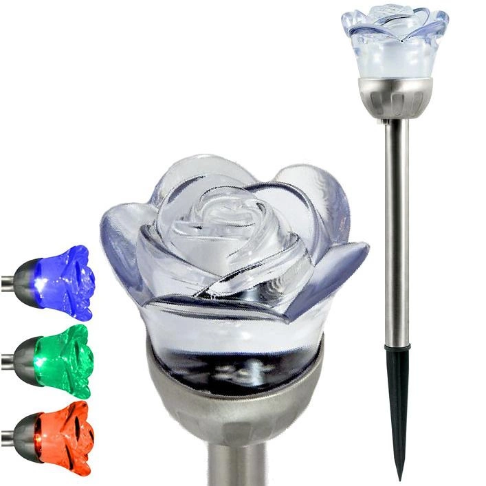Lampa solarna w kolorze satynowym przypominająca różę sprawdzi się jako dekoracyjne i praktyczne oświetlenie Twojego ogrodu. Oświetlenie solarne jest zarówno praktyczne, jak i przyjazne dla środowiska. Postawienie kilkunastu takich lamp po obu stronach wzdłuż ogrodowej alejki zapewni fantastyczny efekt wizualny. Idealny sposób na spędzenie ciepłego letniego wieczoru w tak klimatycznym oświetleniu.