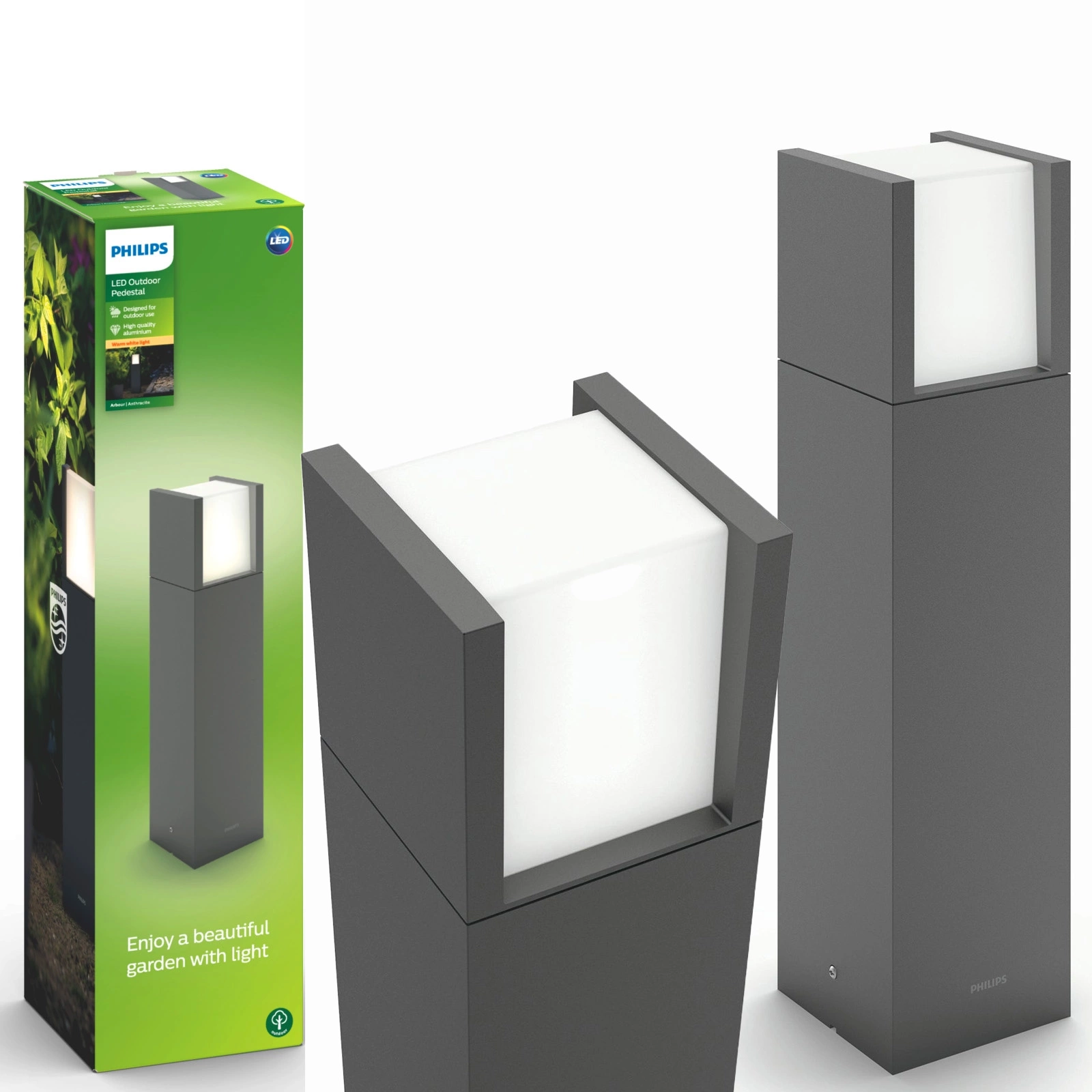 Oferujemy nowoczesną lampę ogrodową słupek marki Philips serii Arbour o wysokości 40 cm, idealną do oświetlenia zewnętrznego. Wyposażona w efektywną technologię LED, lampa zużywa jedynie 6W energii, generując światło o strumieniu świetlnym 600 lumenów i temperaturze barwowej 2700K, co pozwala na uzyskanie przytulnej i ciepłej atmosfery w ogrodzie lub na tarasie. Dzięki klasie ochrony IP44, urządzenie jest odporne na wilgoć i kurz, co zapewnia jego trwałość nawet w trudnych warunkach atmosferycznych. Wysoka jakość wykonania oraz nowoczesny styl sprawiają, że lampa ta jest nie tylko praktycznym źródłem światła, ale także estetycznym dodatkiem do zewnętrznej przestrzeni. Żywotność źródła światła lampy Arbour wynosi aż 25 000 godzin, co gwarantuje długoterminową satysfakcję z zakupu.