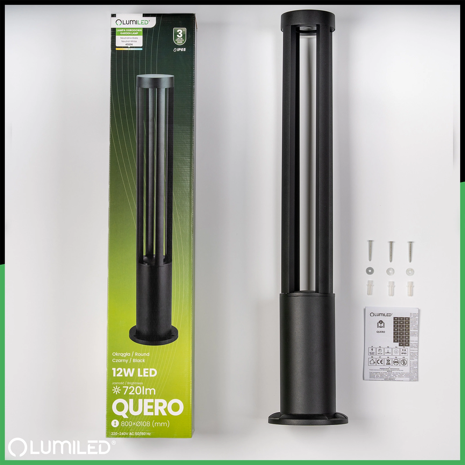 Lampa Ogrodowa Słupek Zewnętrzny Stojący 12W LED 4000K QUERO 80cm LUMILED
