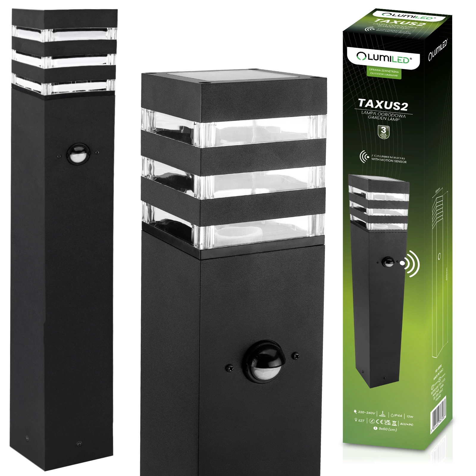 Lampa Ogrodowa Słupek Zewnętrzny Stojący E27 LED Czujnik Ruchu TAXUS 2 60cm LUMILED