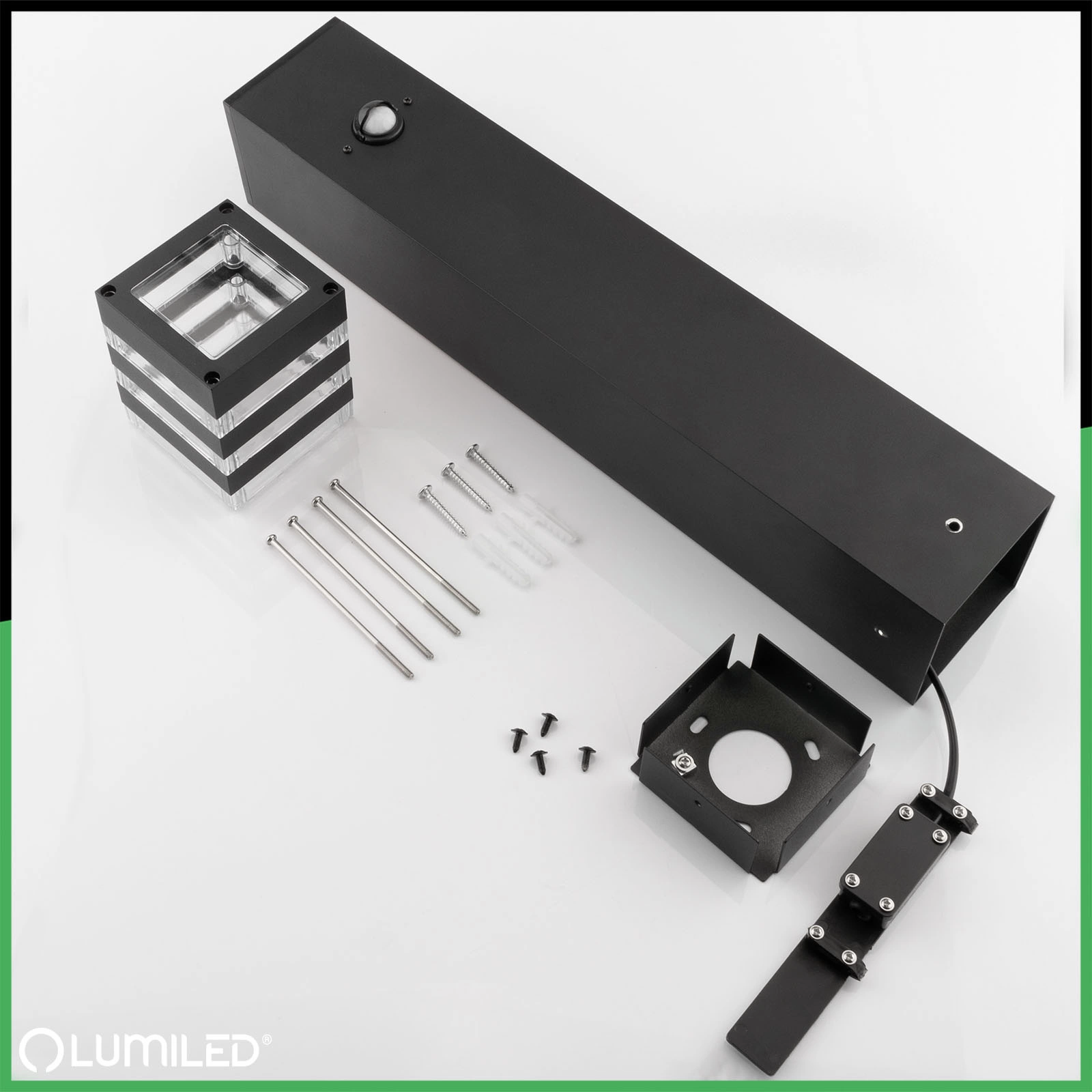 Lampa wyposażona w czujnik ruchu PIR i zmierzchu włącza się tylko wtedy, gdy jest to potrzebne, co zwiększa wygodę i pozwala oszczędzać energię. Idealnie sprawdza się przy wejściach, podjazdach i ścieżkach, zapewniając światło dokładnie wtedy, gdy go potrzebujesz. Obudowa z odpornego aluminium i klosz z trwałego poliwęglanu gwarantują odporność na warunki atmosferyczne i długą żywotność produktu.