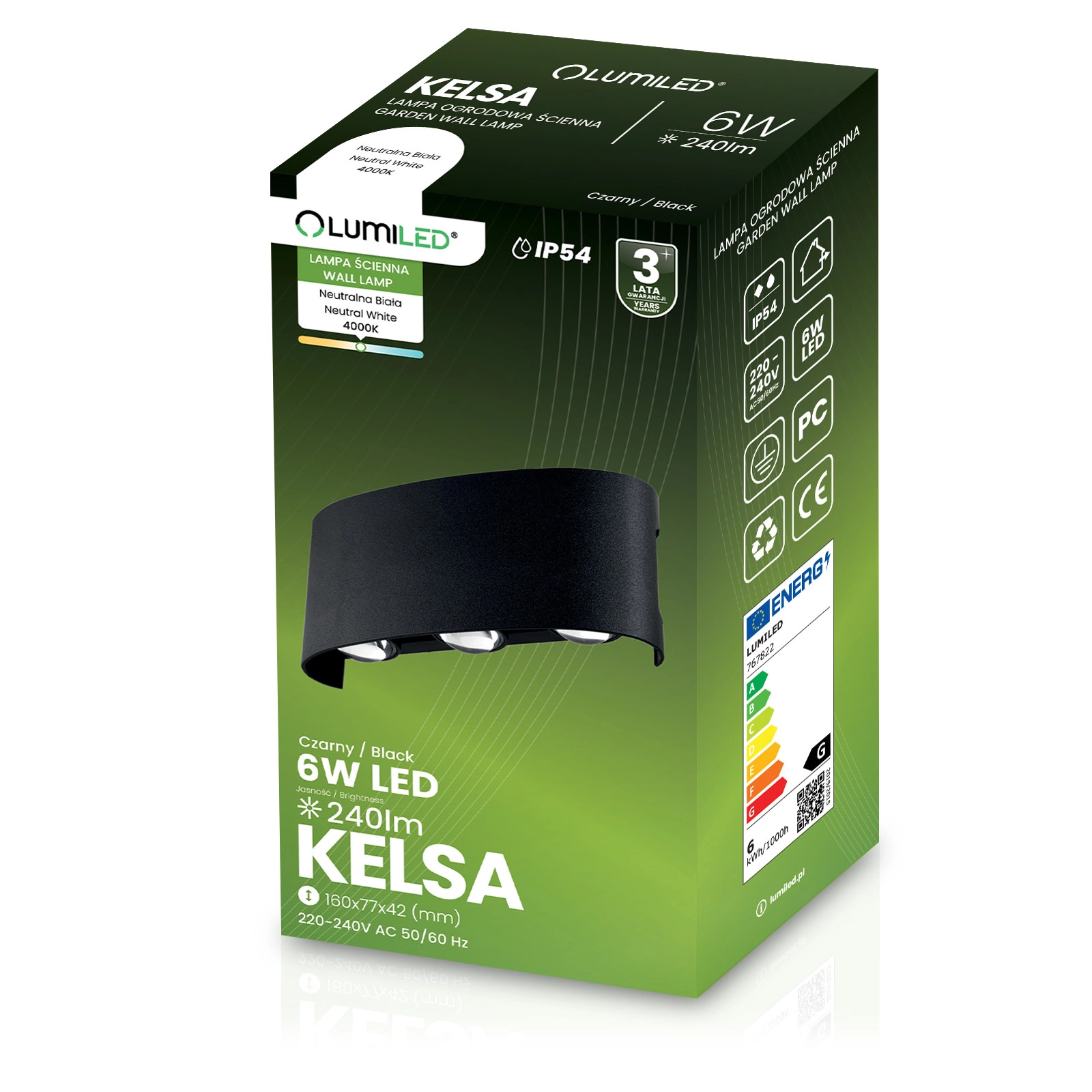 Lampa ogrodowa ścienna KELSA marki Lumiled to połączenie minimalistycznej estetyki i praktycznej funkcjonalności. Emituje neutralne światło 4000K, które delikatnie rozświetla taras, balkon lub wejście, tworząc przyjemną atmosferę oraz podnosząc bezpieczeństwo. Dzięki mocy 6W i strumieniowi świetlnemu 240 lm lampa jest ekonomiczna i skuteczna, a jej solidna obudowa o wysokiej klasie szczelności zapewnia odporność na warunki atmosferyczne. Elegancki czarny kolor i prosta forma sprawiają, że nasza lampa doskonale komponuje się z różnymi stylami elewacji.