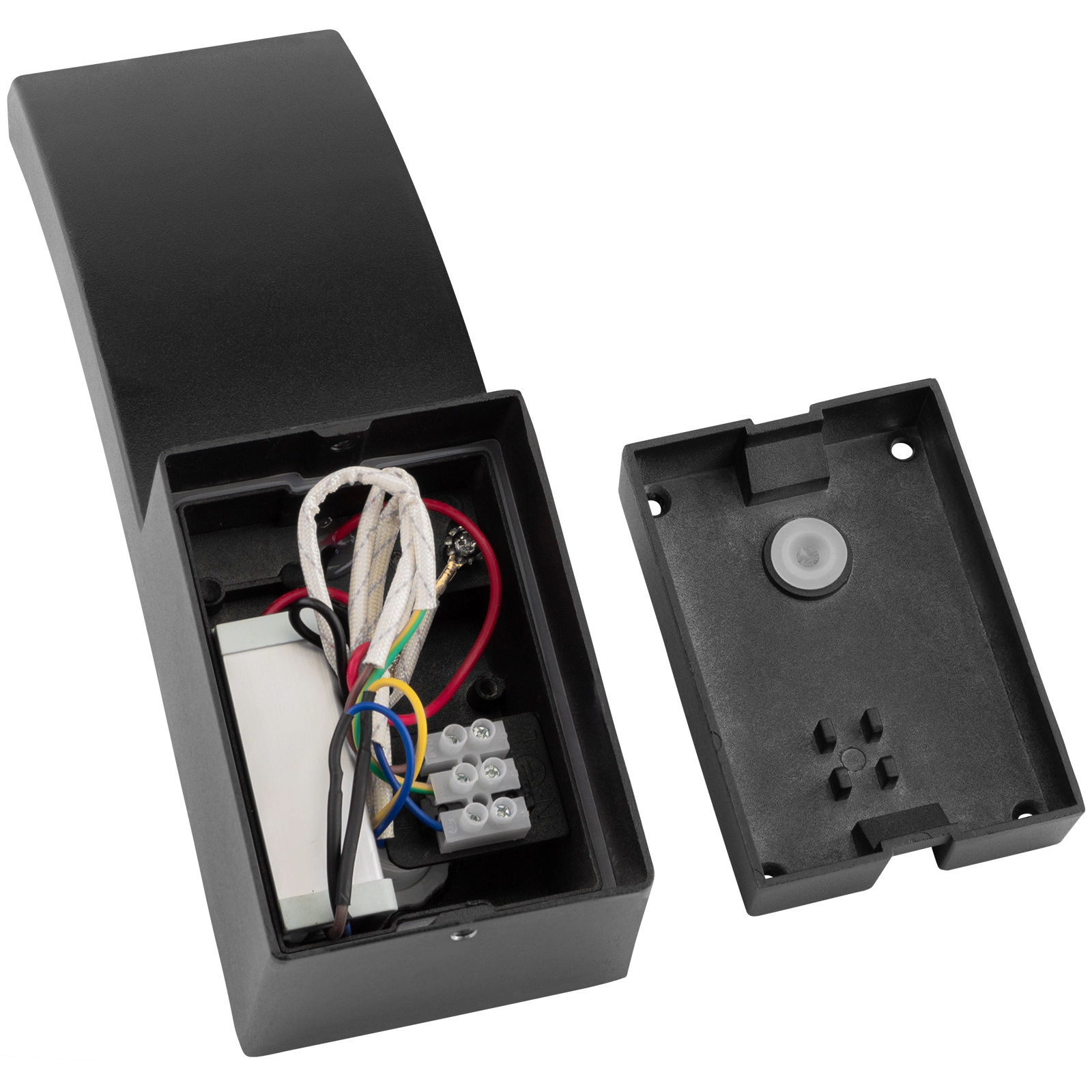 • Dwuelementowa obudowa i wewnętrzna kostka montażowa umożliwiają szybką i wygodną instalację