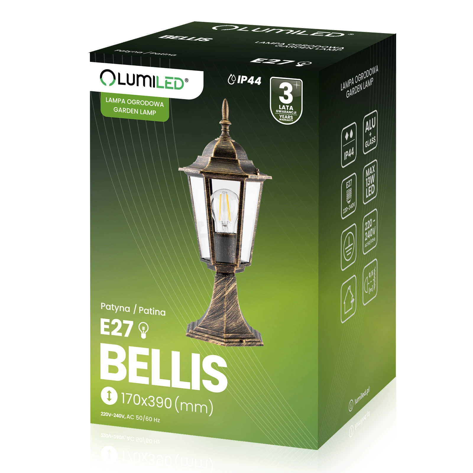 Lampa Ogrodowa Zewnętrzna E27 SŁUPEK LATARNIA 39cm Patyna BELLIS LUMILED - skład produktu