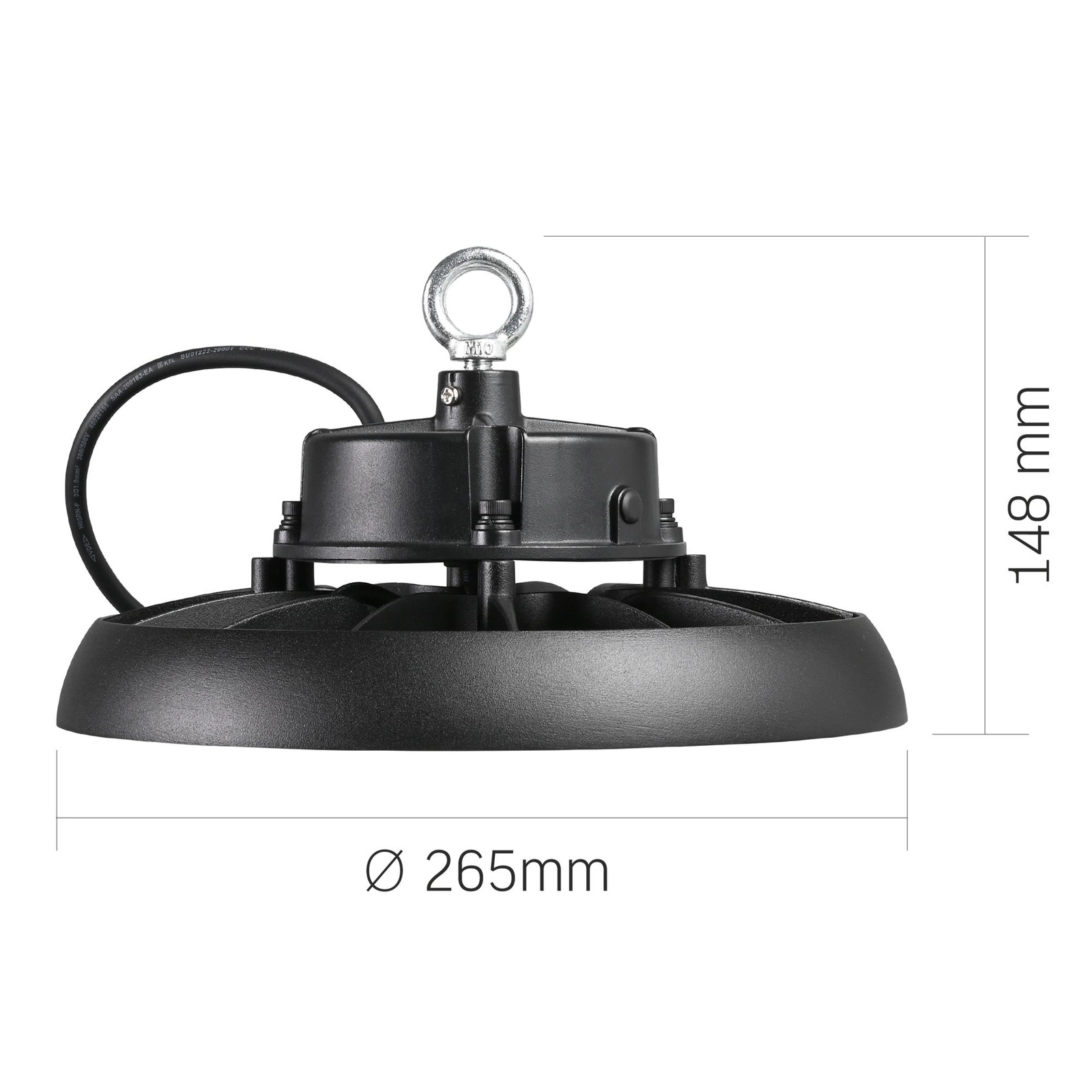 Odkryj nowoczesne oświetlenie z lampą LED High-Bay od VIDEX, idealnie nadającą się do oświetlenia dużych przestrzeni zarówno wewnętrznych, jak i zewnętrznych. Dzięki mocy 100W i strumieniowi świetlnemu 16200lm, ta wisząca lampa gwarantuje wyjątkową jasność i oszczędność energii. Zastosowanie zintegrowanego źródła LED i wysokiej skuteczności świetlnej 162 lm/W sprawia, że urządzenie jest doskonałym wyborem dla każdego, kto ceni sobie efektywność oraz estetykę. Czarna, aluminiowa obudowa dodaje elegancji i nowoczesnego wyglądu.