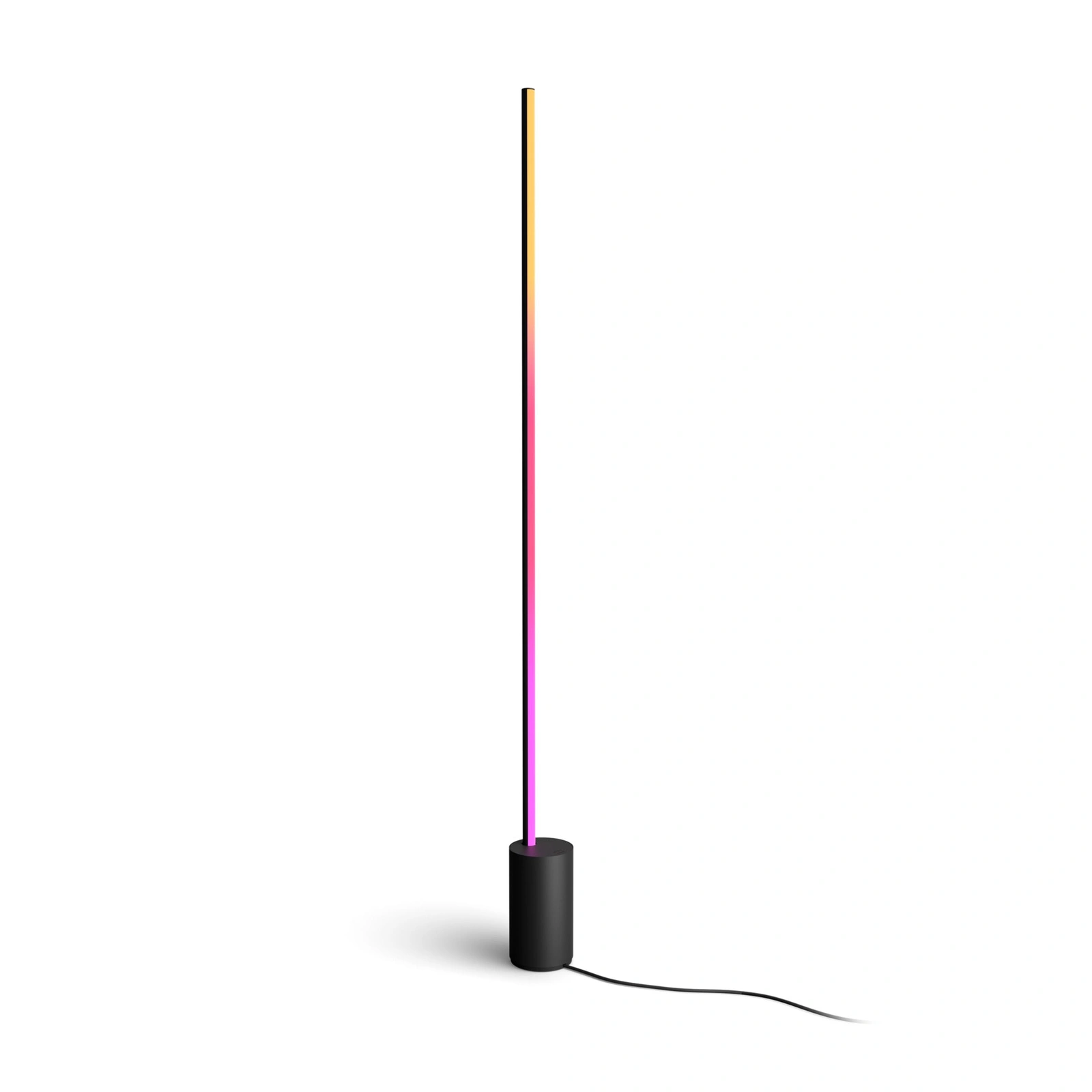 Elegancka lampa podłogowa Philips Hue Signe Gradient to połączenie minimalistycznego designu i inteligentnego oświetlenia. Smukła sylwetka i wysoka jakość wykonania (aluminiowa obudowa dostępna w wersjach: czarna, biała lub drewniana) idealnie wpisuje się w każde wnętrze, dodając mu nowoczesnego charakteru. Technologia gradientu pozwala na płynne przejście między wieloma kolorami i odcieniami białego światła (od ciepłego do dziennego), które malują na ścianie spektakularne gradienty świetlne. Intuicyjne sterowanie przez aplikację (Bluetooth), głos (Amazon Alexa, Google Assistant, Apple HomeKit) lub – po dodaniu – przez mostek Hue Bridge otwiera prawdziwie inteligentne możliwości.