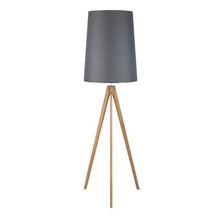 Lampa Podłogowa Stojąca WALZ GREY Trójnóg Abażur Grafitowo-Drewniana Skandynawska E27 5046 TK Lighting