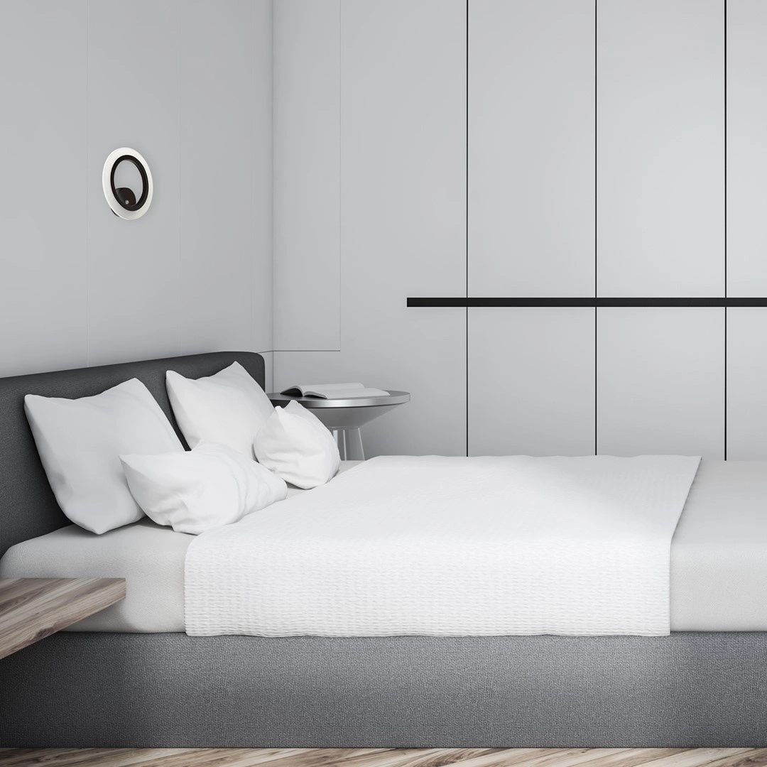 Kinkiet wyróżnia się prostą, minimalistyczną formą. Stanowi stylowy dodatek do współczesnych wnętrz. Można ją wykorzystać jako dodatkowe oświetlenie w domu lub firmie. Niewielkie rozmiary sprawiają, że sprawdzi się w niewielkich pomieszczeniach i wąskich korytarzach.